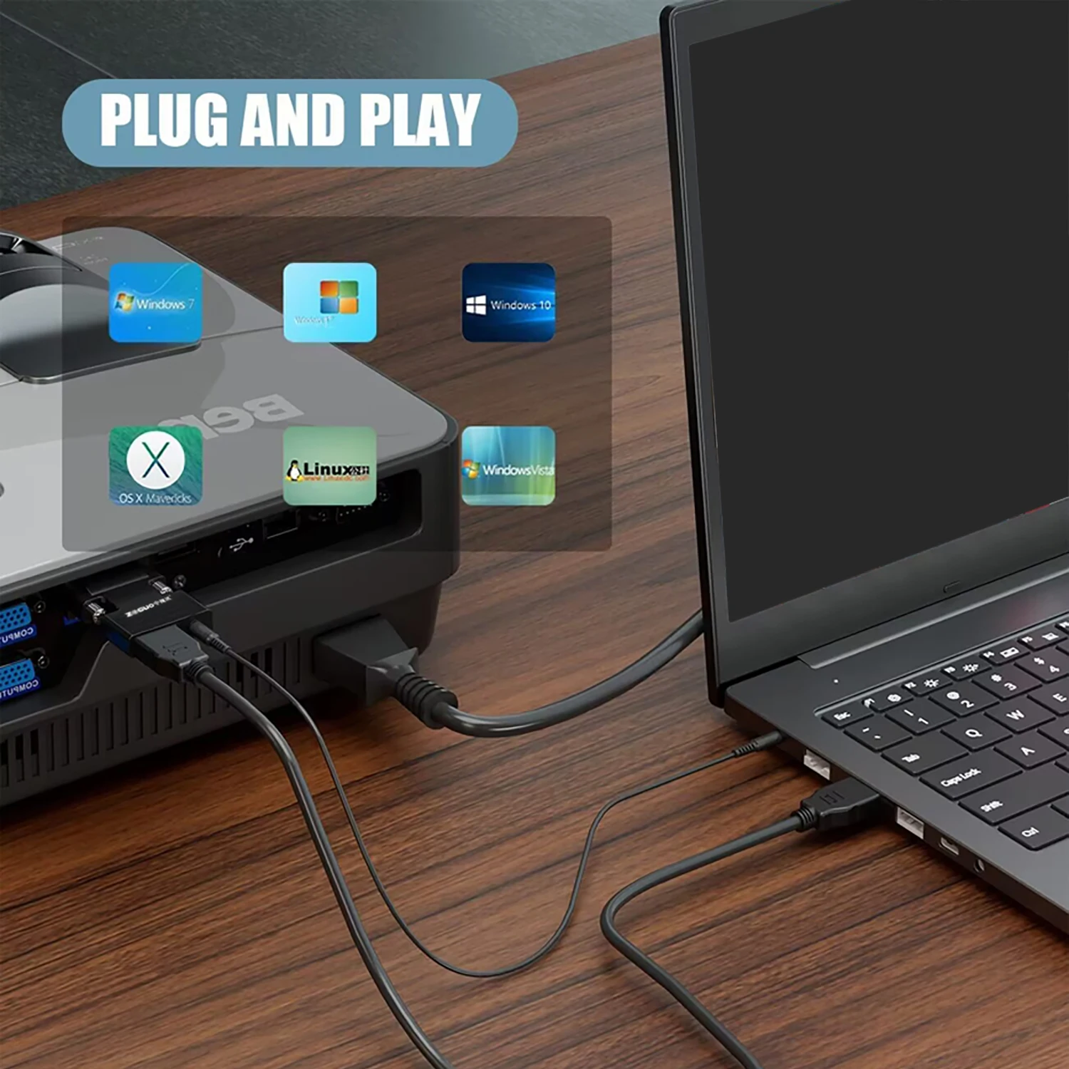 【Bonificación extra】Cable de audio Jack de 3,5mm. Hay tornillos resistentes en ambos extremos que no se caerán fácilmente. Con conexión VGA a través de un cable HDMI adicional. La conexión de audio de 3,5mm envía la voz al altavoz o la pantalla. El audio se reproduce de forma sincrónica, ideal para cine en casa y presentaciones de negocios.