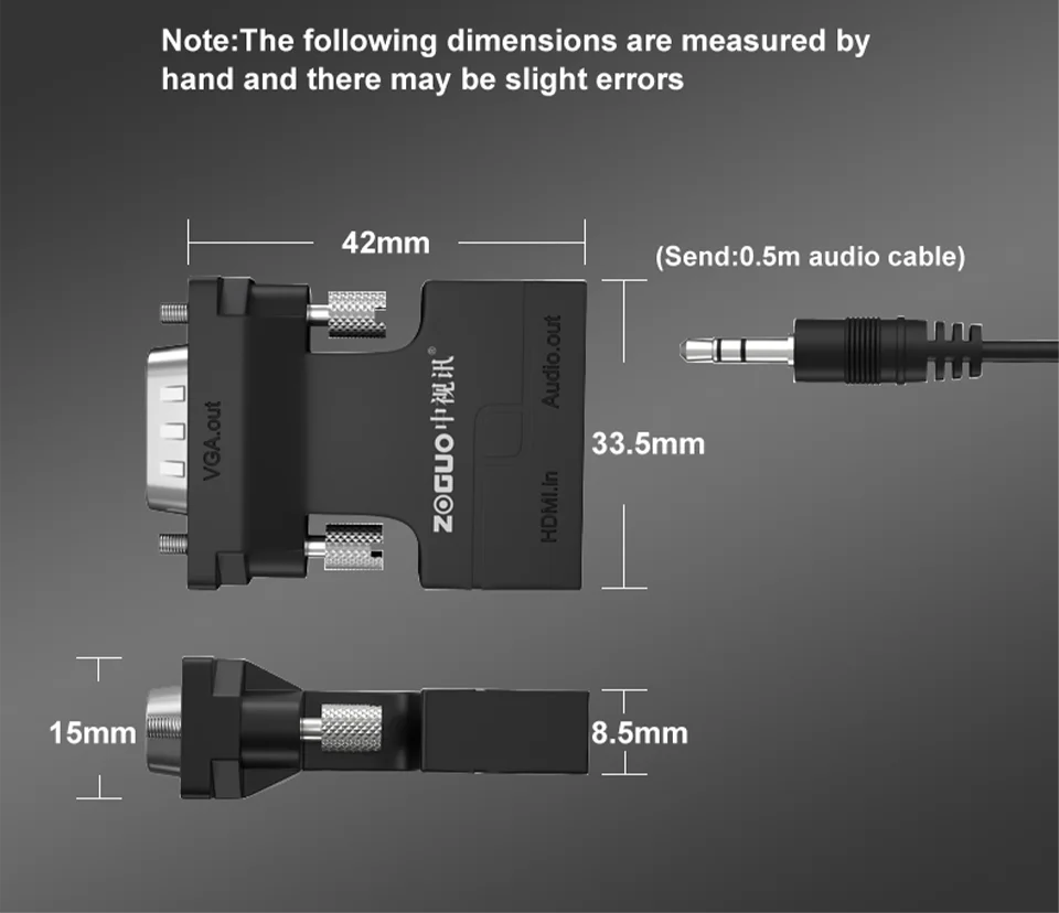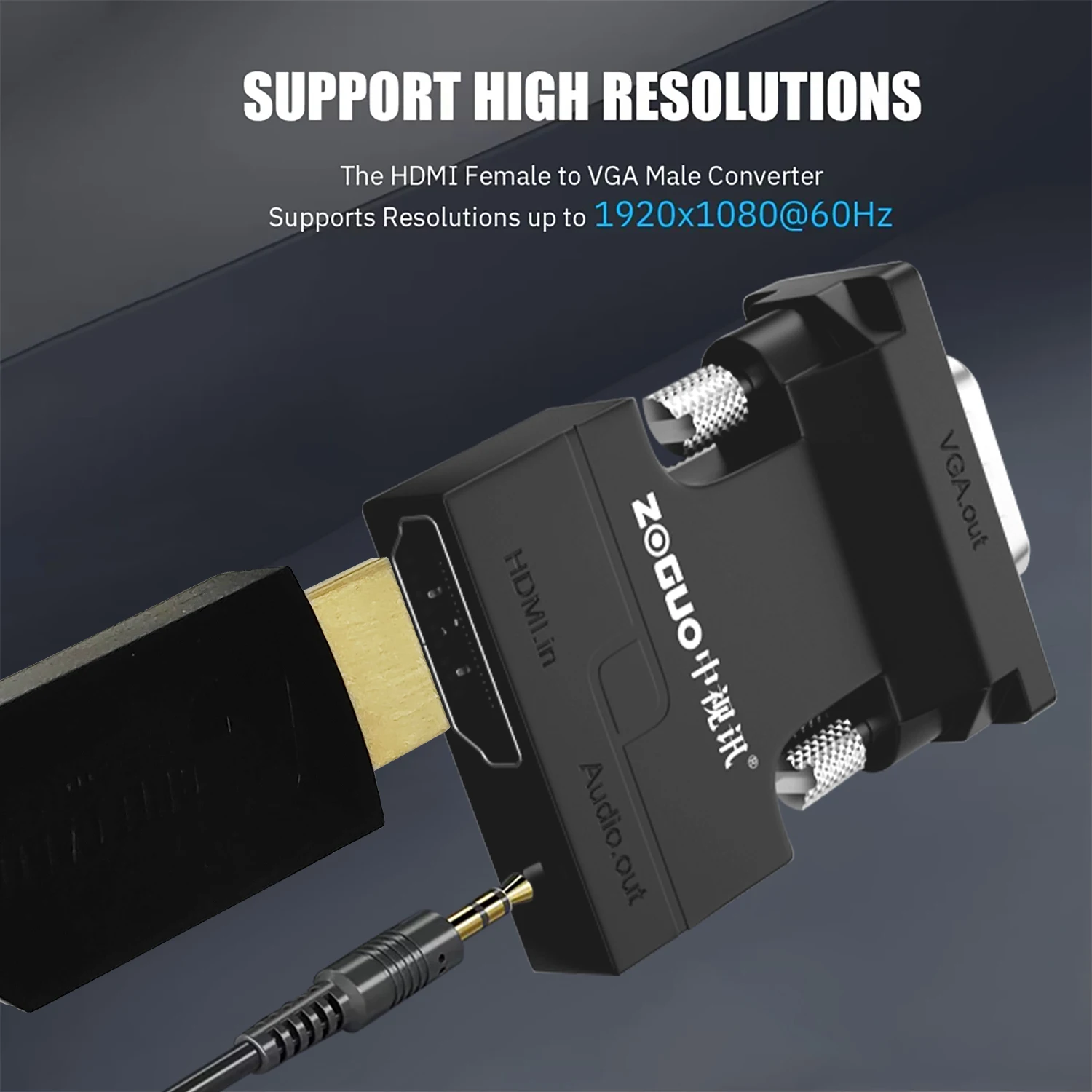 Adaptador ZOGUO HDMI a VGA con convertidor de salida de audio de 3,5mm
