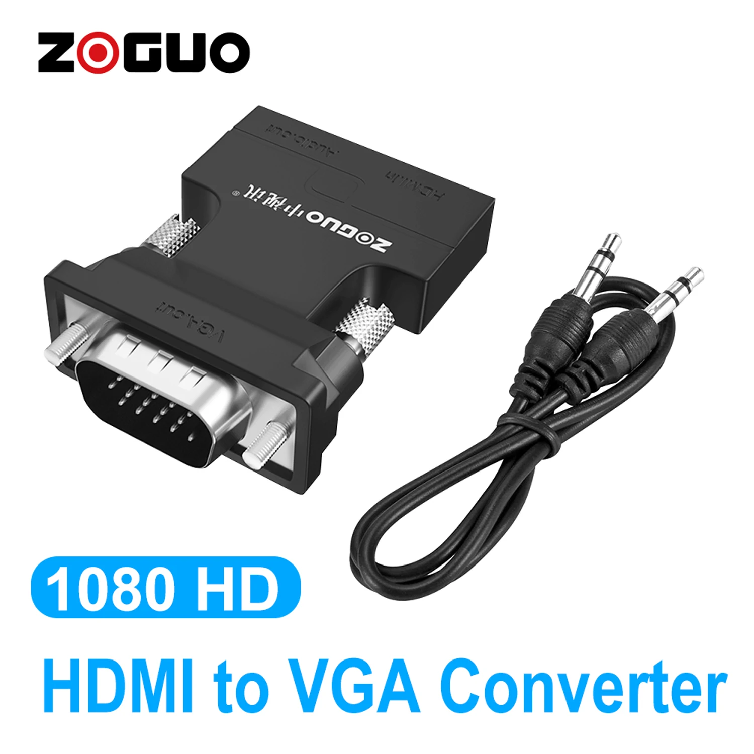 Comprar ZOGUO-Adaptador de HDMI a VGA, convertidor con salida de Audio de 3,5mm, conector de caja superior para ordenador portátil, Monitor y proyector