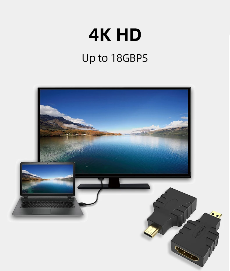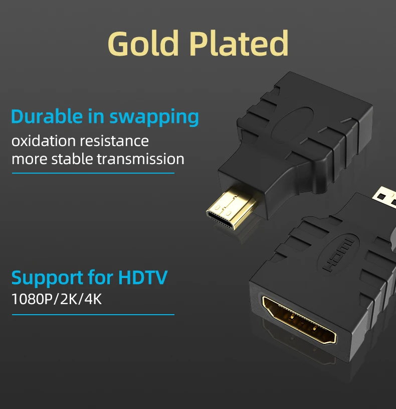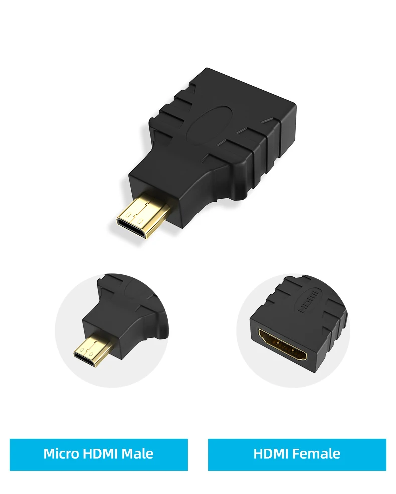 El adaptador Micro HDMI macho a HDMI hembra permite transferir la señal de audio y video desde su cámara, computadora portátil u otro dispositivo con puerto Micro HDMI a su HDTV o proyector con el puerto HDMI estándar. No dude en usarlo para transferir vídeo de alta definición y audio digital a una pantalla de TV más grande.