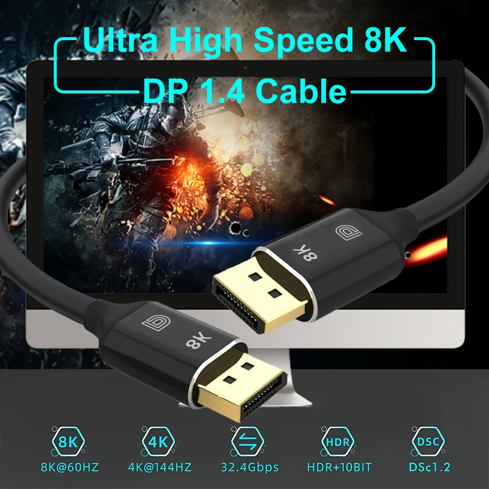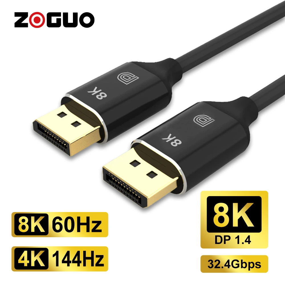 Comprar ZOGUO-Cable de 8K DisplayPort 8K @ 60Hz 4K @ 144Hz DP 1,4 macho, Cable de velocidad Ultra alta para ordenador portátil/PC/TV/Monitor de juegos, Cable DP 1,2