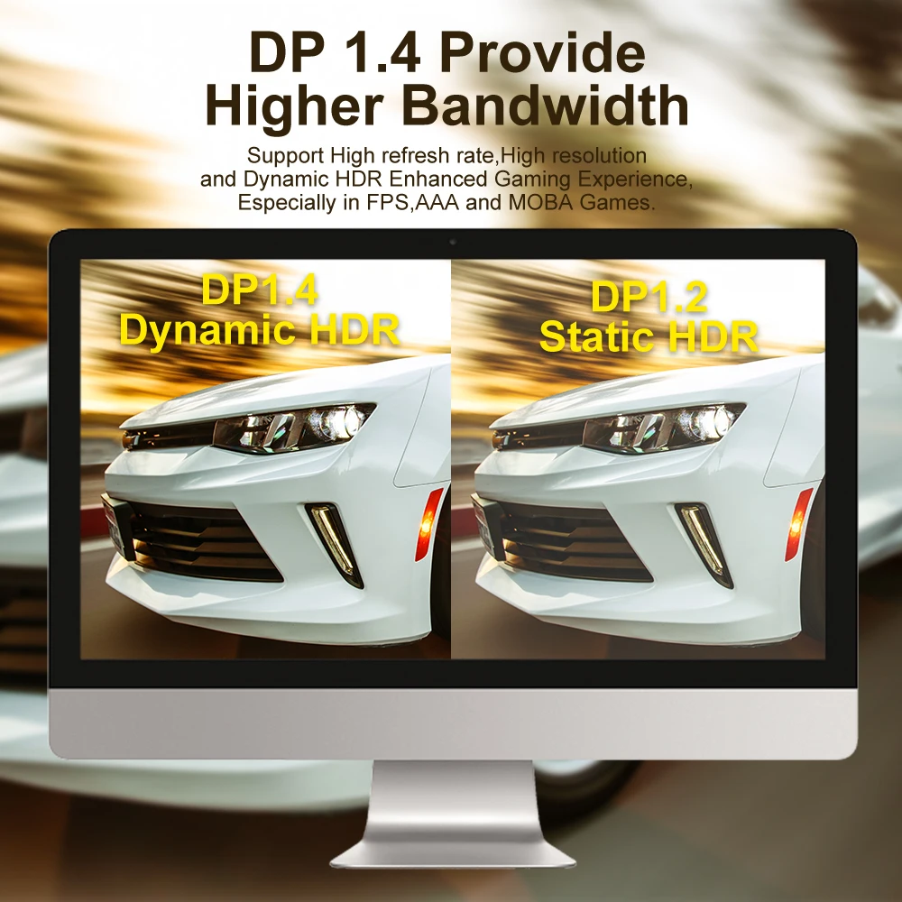 【Amplia compatibilidad con el monitor para juegos】Compatible con monitores Gaming Samsung, Dell, LG, HP, ASUS, Acer, Alienware. Soporta DP, DP ++ y DisplayPort ++. Será genial usar el cable Adoreen Displayort 1,4 para mostrar tu habilidad de juego Cyberpunk 2077 en RTX3080. También compatible con tarjetas gráficas, como Radeon R9 290, Geforce GTX, HD Graphics 4600,ASUS HD 7970 DCII.