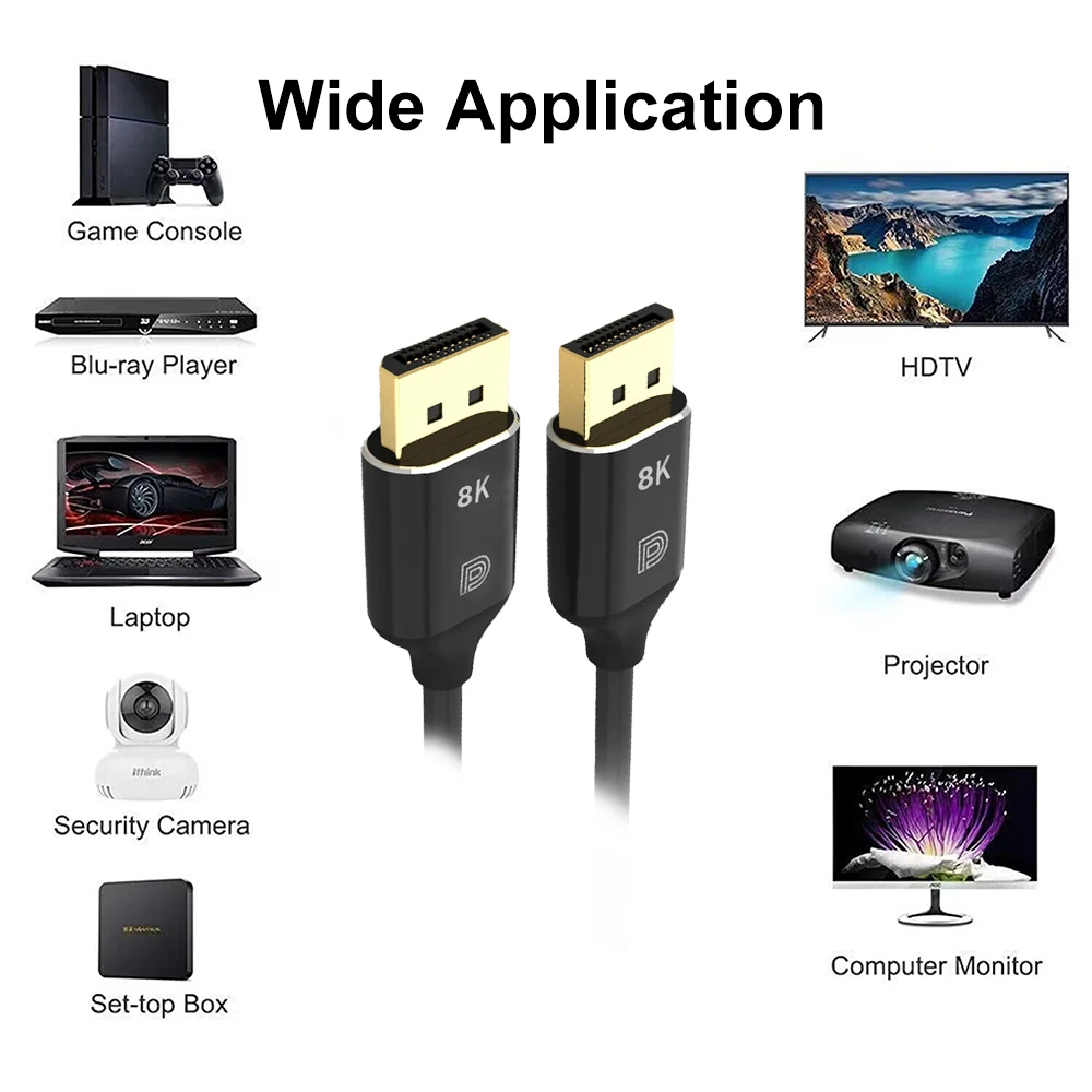 【Cable DisplayPort 8K UHD】Los cables DisplayPort 1,4 de ultra alta velocidad ZOGUO admiten resolución de hasta 8K (7680x4320) incluyendo 5K (5120x2880) a 60Hz, 4K Ultra HD (3840x2160 @ 144Hz) y 1440P 2K @ 165Hz,1080P @ 240Hz.