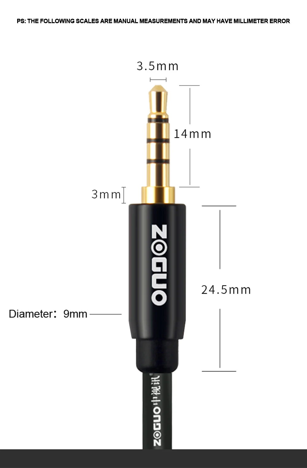 ZOGUO 3,5mm HIFI Aux Cable TRRS Audio Jack con micrófono