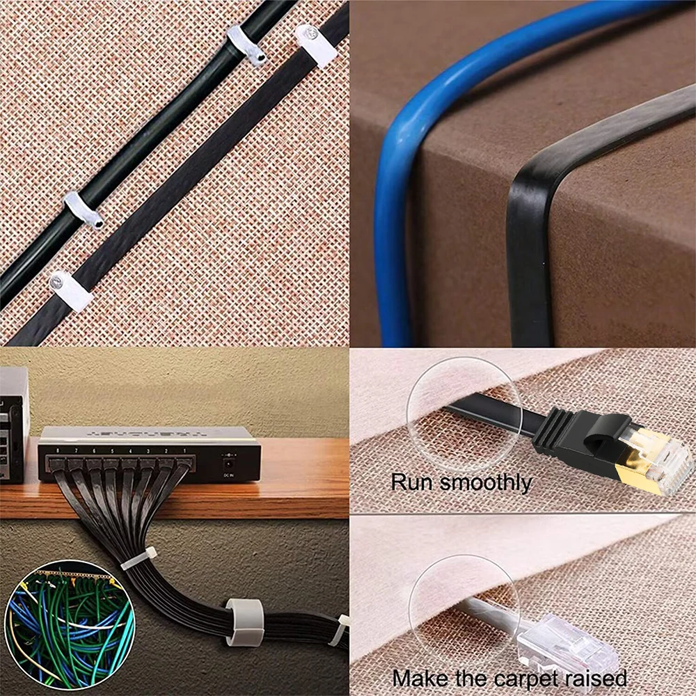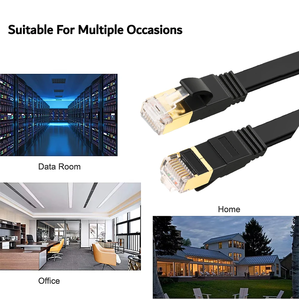 Adecuado para exteriores e interiores:La forma del cable plano ZOGUO permite una instalación más limpia y segura. Puede hacer que el cable pase a lo largo de las paredes siguiendo los bordes y las esquinas o incluso hacerlo completamente invisible deslizándolo debajo de una alfombra. Cumple con todos los requisitos de cable CAT 8 propuestos y es compatible con los estándares de cable CAT7/CAT6/CAT6e/CAT5e/CAT5. Perfecto para conectar enrutadores, conmutadores, módems, PlayStations, cámaras IP, adaptadores de red, concentradores, Smart TV, portátiles y más.