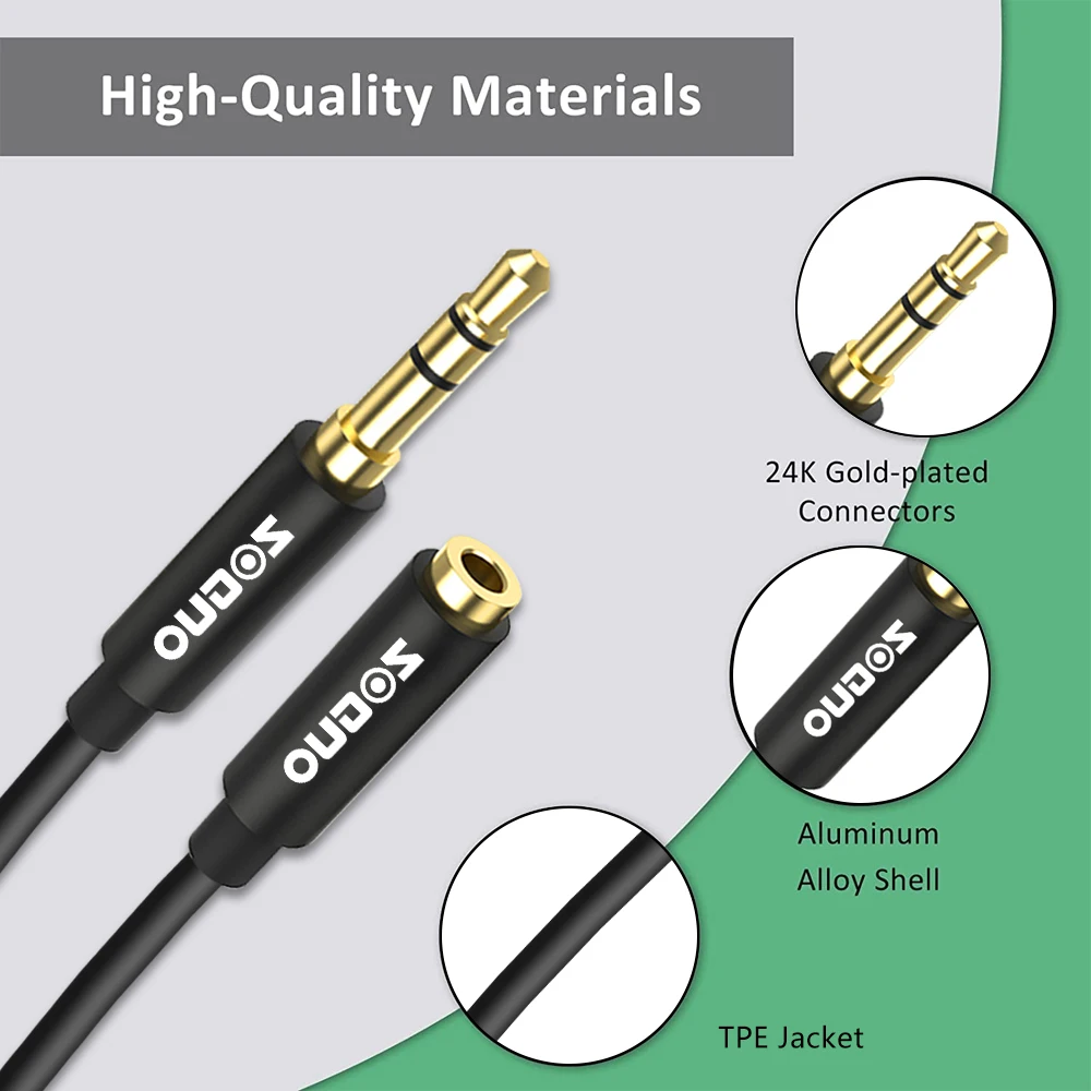 Calidad de sonido HIFI:Con conectores de resistencia a la corrosión chapados en oro de 24K y doble blindaje, la extensión del cable de audio blindado de 3,5mm proporciona una transmisión de señal óptima y ofrece un audio claro y nítido y sin pérdidas, sin ruido, experiencia de audio de alta fidelidad.