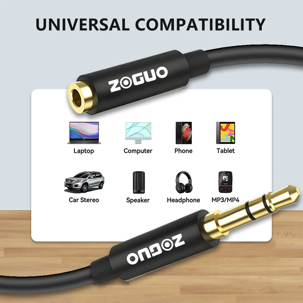 Comprar ZOGUO-cable de extensión de audio estéreo Hifi de 3,5 MM, conector macho a hembra TRS Aux para auriculares de coche, altavoz, Smartphone, 3m/5m/8m/10m