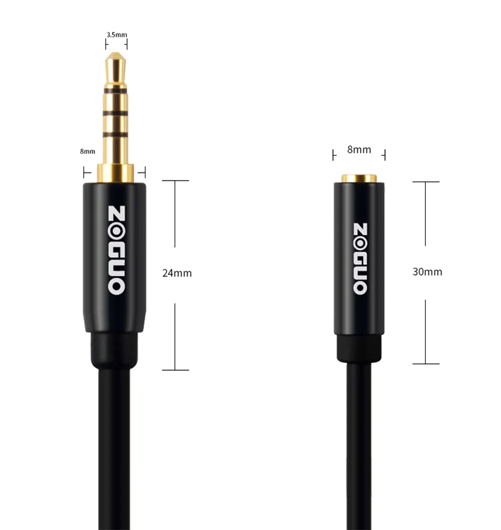 Comprar ZOGUO-Cable de extensión de auriculares HIFI, conector TRRS de 4 polos, 3,5mm, Audio estéreo macho a hembra con micrófono para coche, portátil, Mini PC