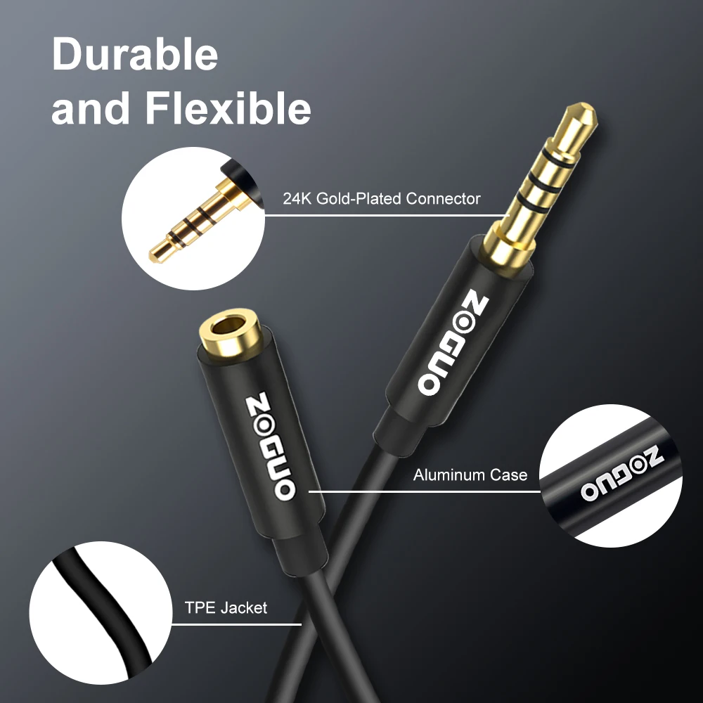 Cable de alto rendimiento:El cable de extensión de auriculares ZOGUO está hecho de material metálico de primera calidad, duradero y elegante. La chaqueta de TPE es bastante robusta y flexible, lo que hace que los cables no se enreden y sean eternos.
