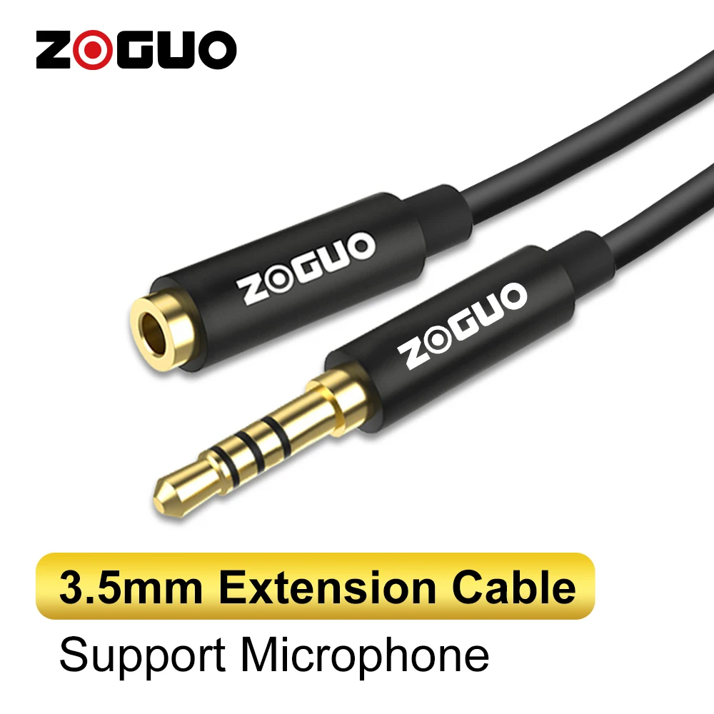 Comprar ZOGUO-Cable de extensión de auriculares HIFI, conector TRRS de 4 polos, 3,5mm, Audio estéreo macho a hembra con micrófono para coche, portátil, Mini PC