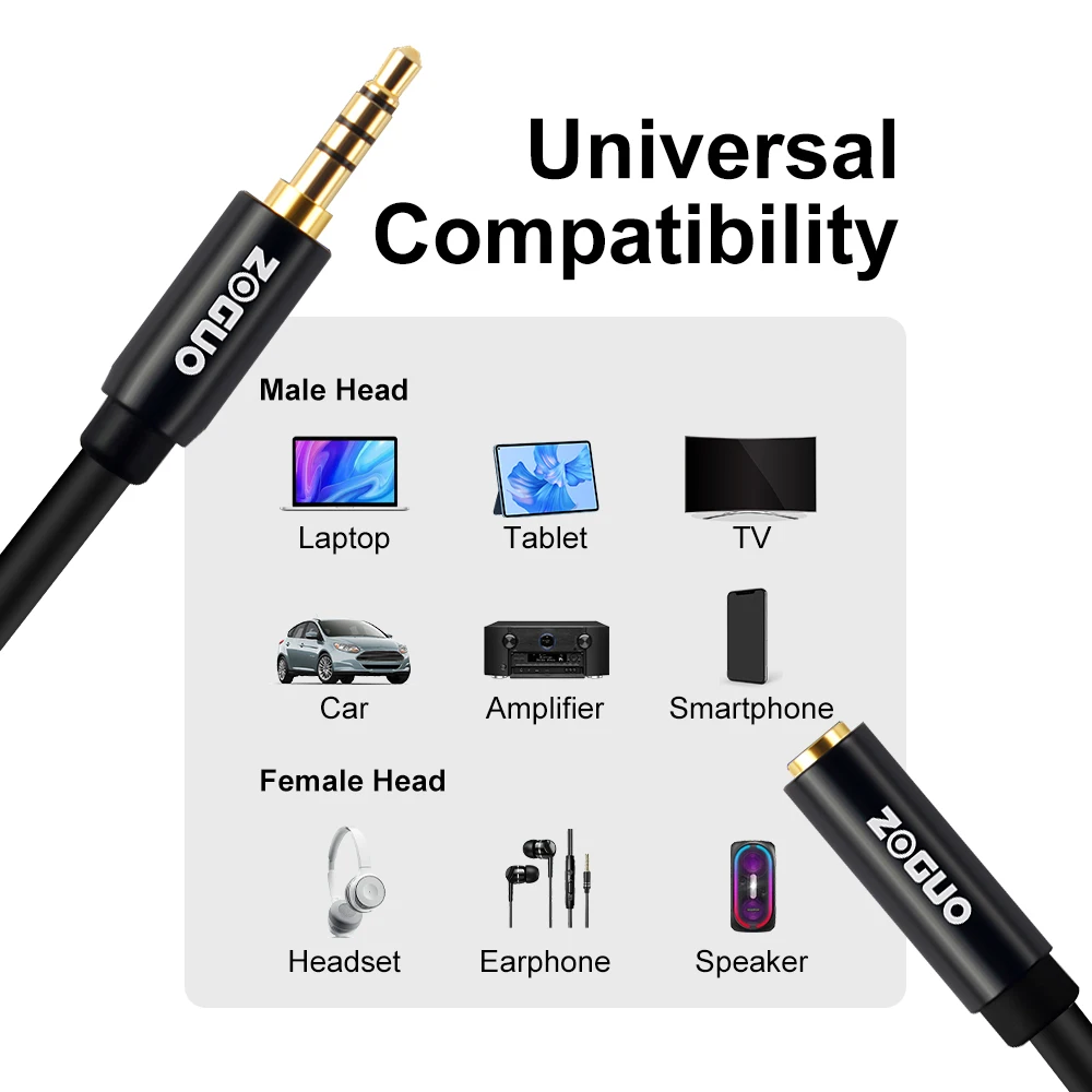 Cable de alto rendimiento:El cable de extensión de auriculares ZOGUO está hecho de material metálico de primera calidad, duradero y elegante. La chaqueta de TPE es bastante robusta y flexible, lo que hace que los cables no se enreden y sean eternos.