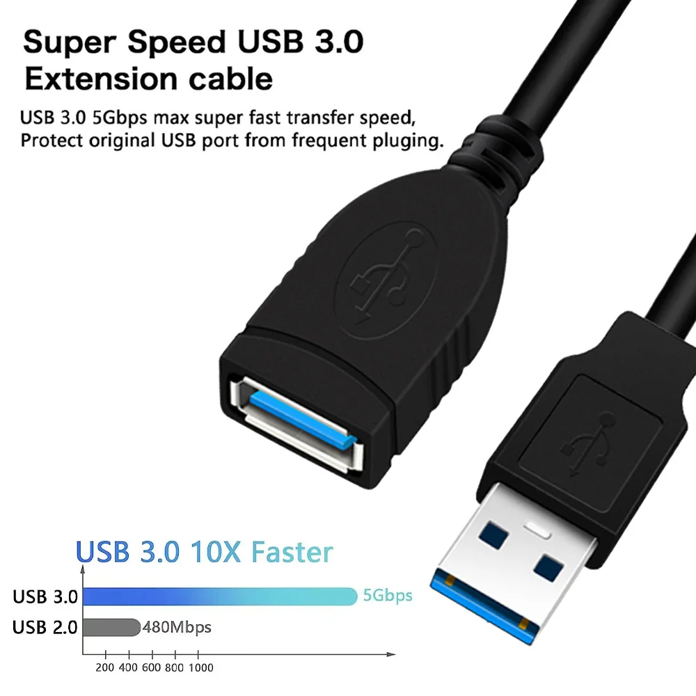 Alta velocidad 5Gpbs: El cable extensor USB ZOGUO admite una velocidad de transferencia de datos USB 3,0 de alta velocidad de hasta 5Gpbs, 10 veces más rápido que USB 2,0 (480 Mbps), que le permite transferir películas o archivos HD en solo segundos, cuando su host está equipado con puerto USB 3,0. También es retrocompatible con USB 2,0, 1,1 y 1,0 (velocidad limitada por el bus USB). Plug & Play en sistema universal, no requiere controlador.
