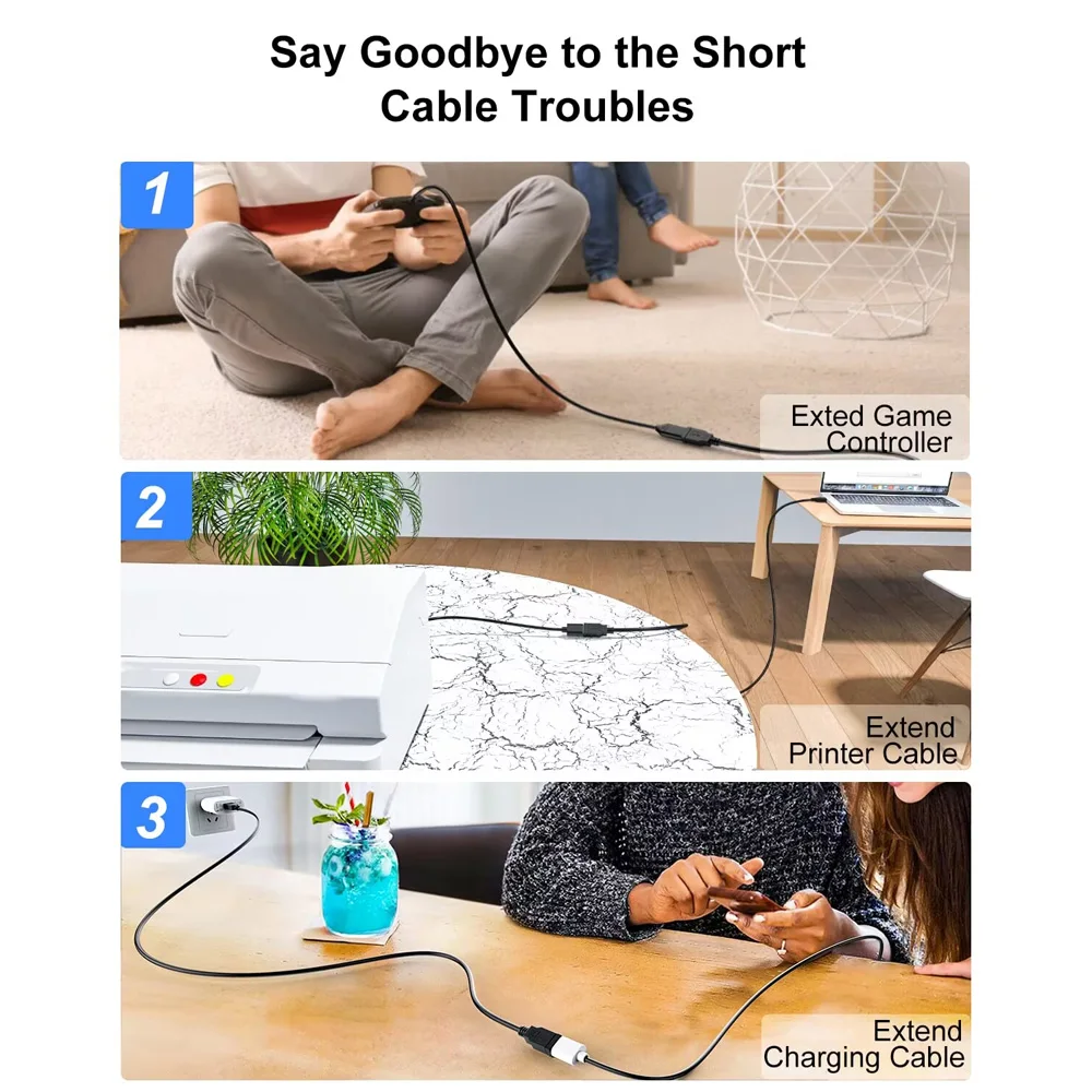 FLEXIBLE Y DURADERO:Con alambre trenzado en el interior, el extensor de cable USB A es flexible y resistente a tirar y arrastrar. Los conectores pueden soportar más de 10000 veces el enchufe. La carcasa de PVC es antiabrasiva.