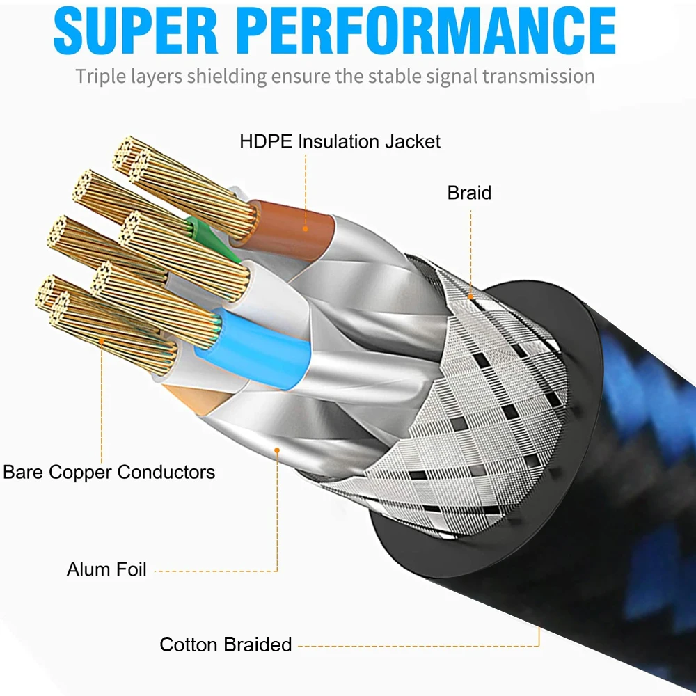 🚀Diseño trenzado duradero:Cable Ethernet ZOGUO Cat 8 envuelto con cordón trenzado de algodón de calidad, lo que hace que el cable LAN sea más resistente y duradero.La prueba demuestra que este cable de Internet se puede doblar al menos 10000 veces sin romperse, muy adecuado para uso a largo plazo.