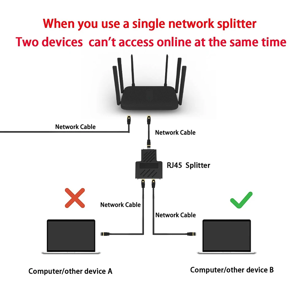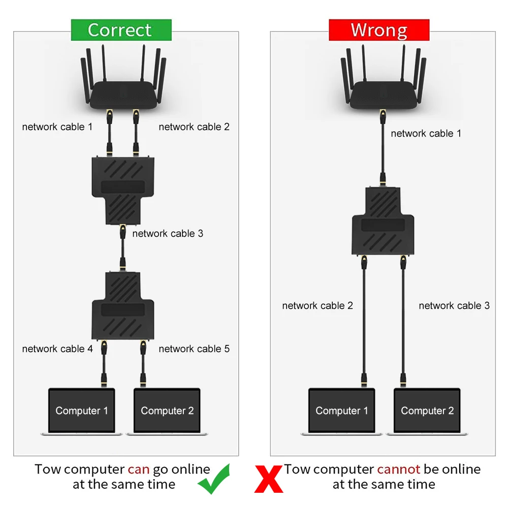 PRECAUCIONES-El adaptador divisor ZOGUO RJ45 es para resolver el problema de conexión causado por cables insuficientes, a través de la conexión física Tap Way para lograr la división de la red a la mitad para habilitar dos dispositivos en línea al mismo tiempo, plug and Play, y no es necesario configurarlo. Este adaptador Ethernet Spiltter es diferente de 1 a 3 divisor de red, ya que 1 a 3 uno no puede permitir que dos dispositivos estén en línea al mismo tiempo.
