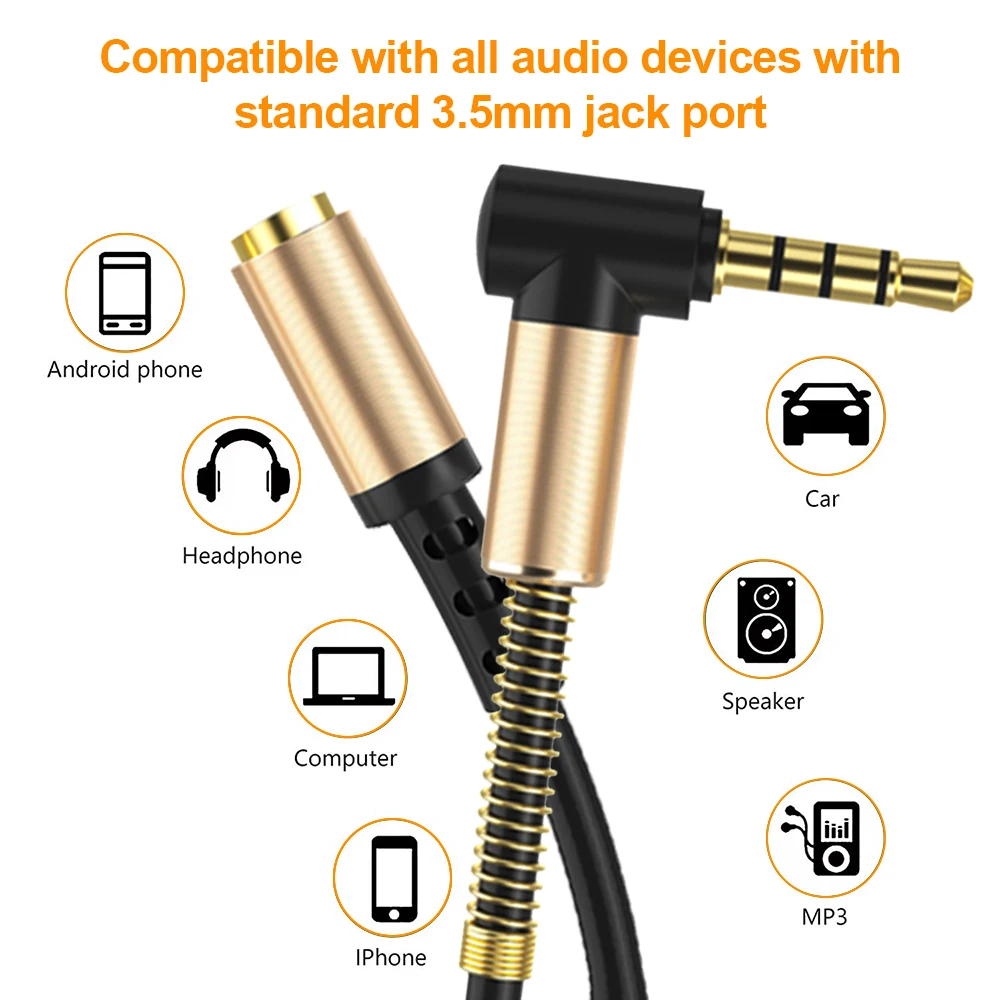 Comprar ZOGUO HIFI Cable auxiliar Jack de 3,5mm con micrófono Audio estéreo macho a hembra Cable de extensión de 90 grados para altavoz coche Xiaomi