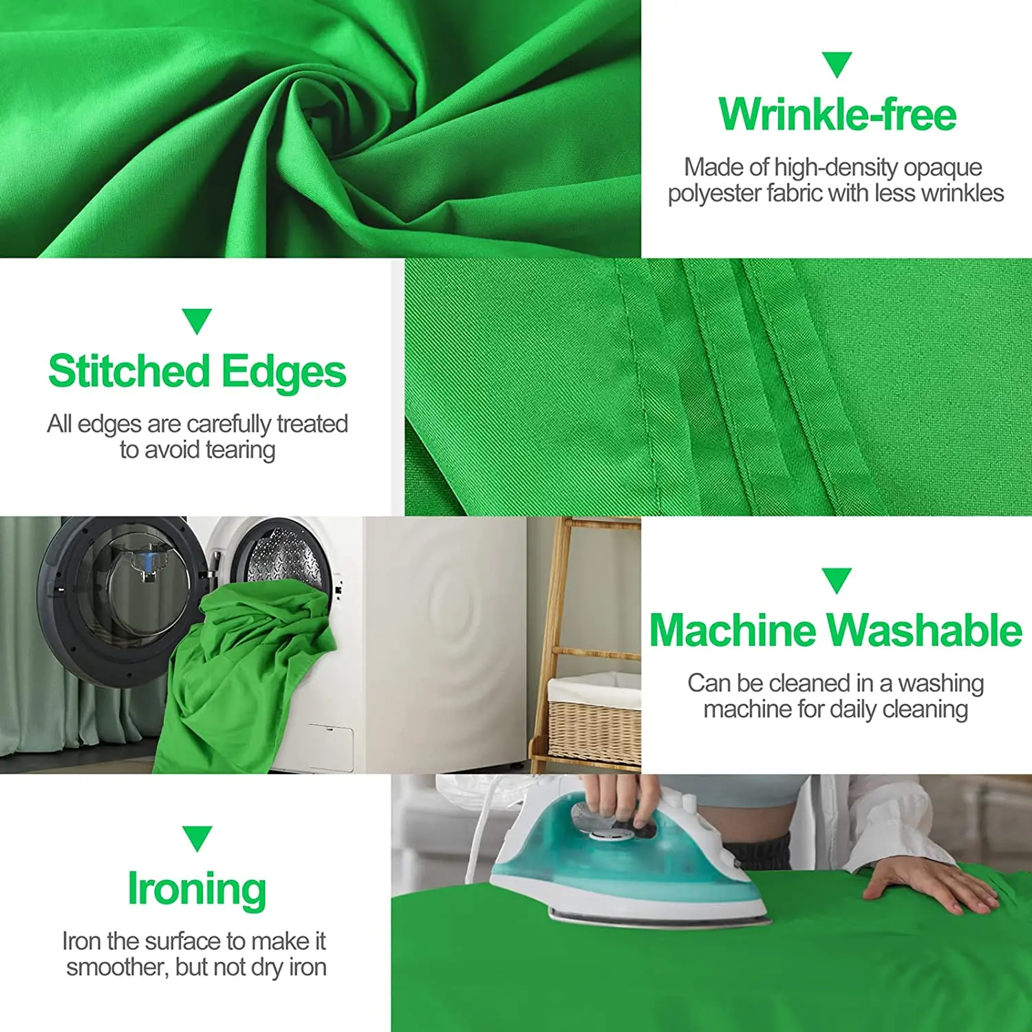 • Material de alta calidad :Hecho de poliéster y algodón, este fondo de pantalla verde es duradero y resistente, garantizando un uso prolongado.