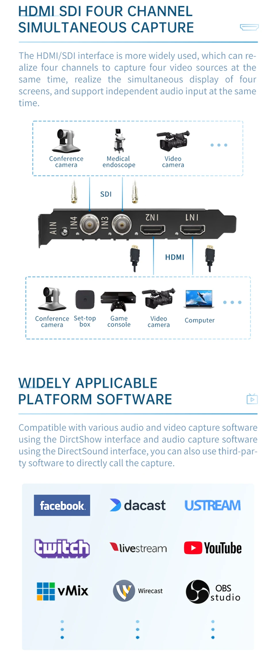 Vmix,Wirecast,OBS,VJ,Xsplit,Windows Media Encoder, Adobe Flash Media Live Encoder, Real Producer Plus, VLC, AMCAP, etc.