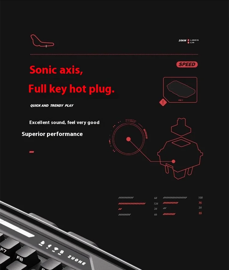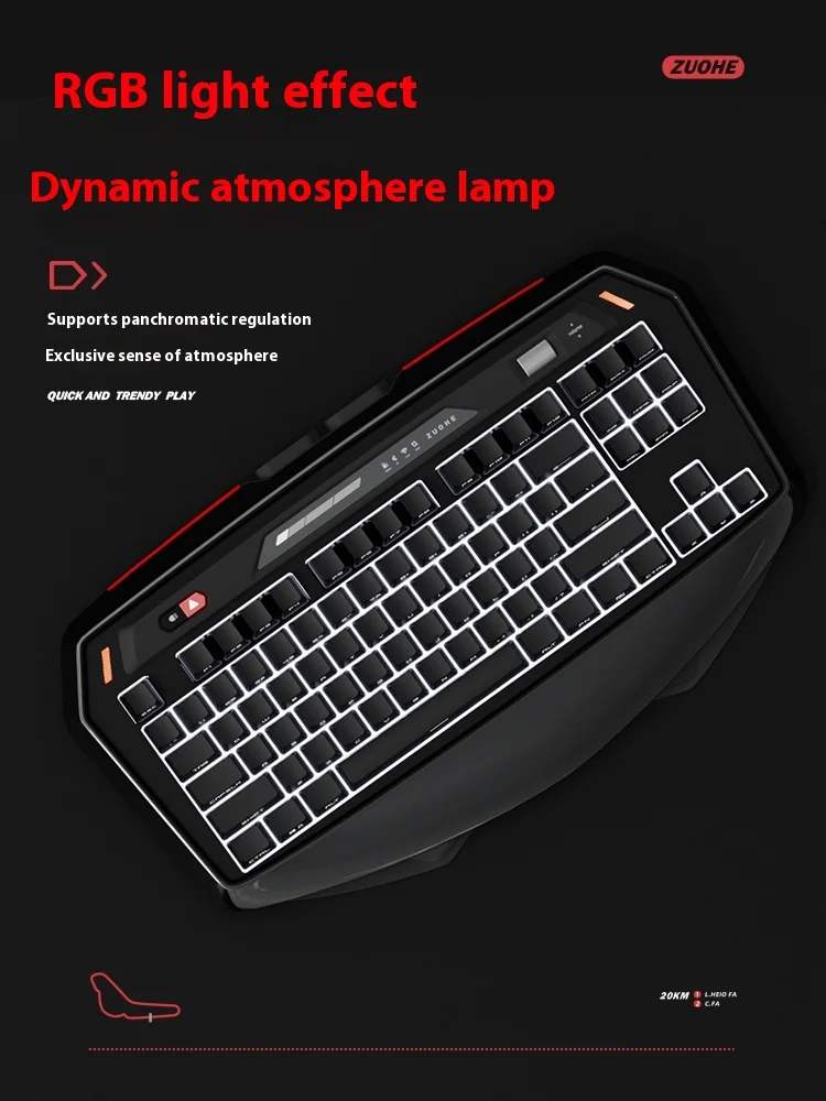 ZORNHER ZUOHE Max870 Teclado mecánico triodo rueda de desplazamiento multifuncional tres modos 8000mAh RGB teclado para juegos de intercambio en caliente