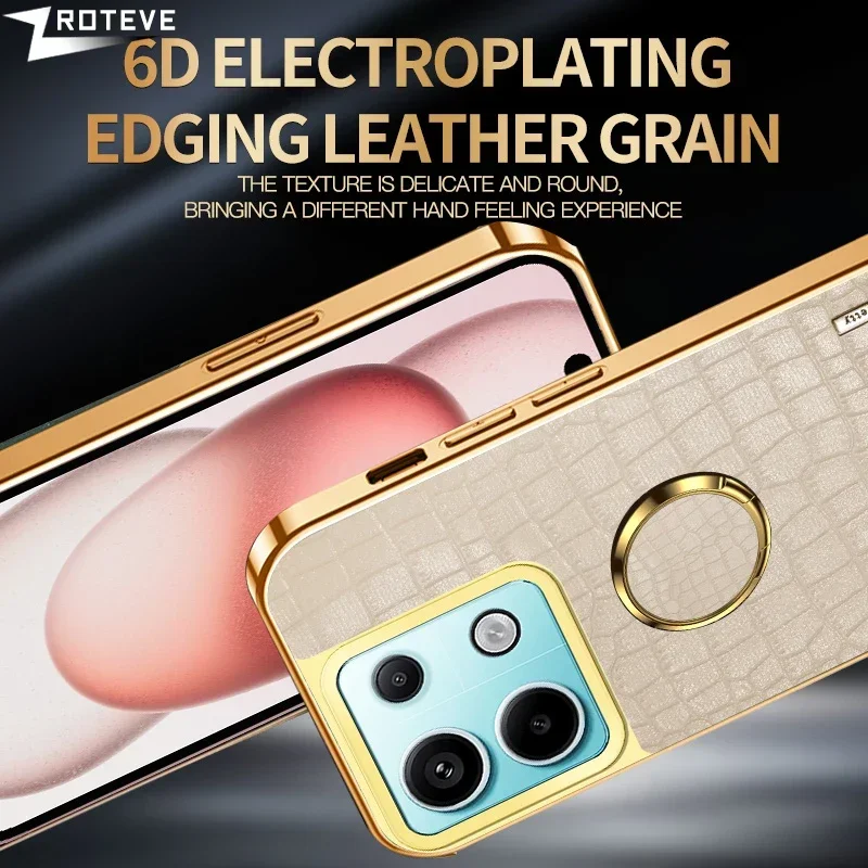 Comprar Zroteve-Funda de cuero de cocodrilo con anillo para teléfono móvil, carcasa suave para Xiaomi Poco M6 X6 Pro, Pocohone PocoX6