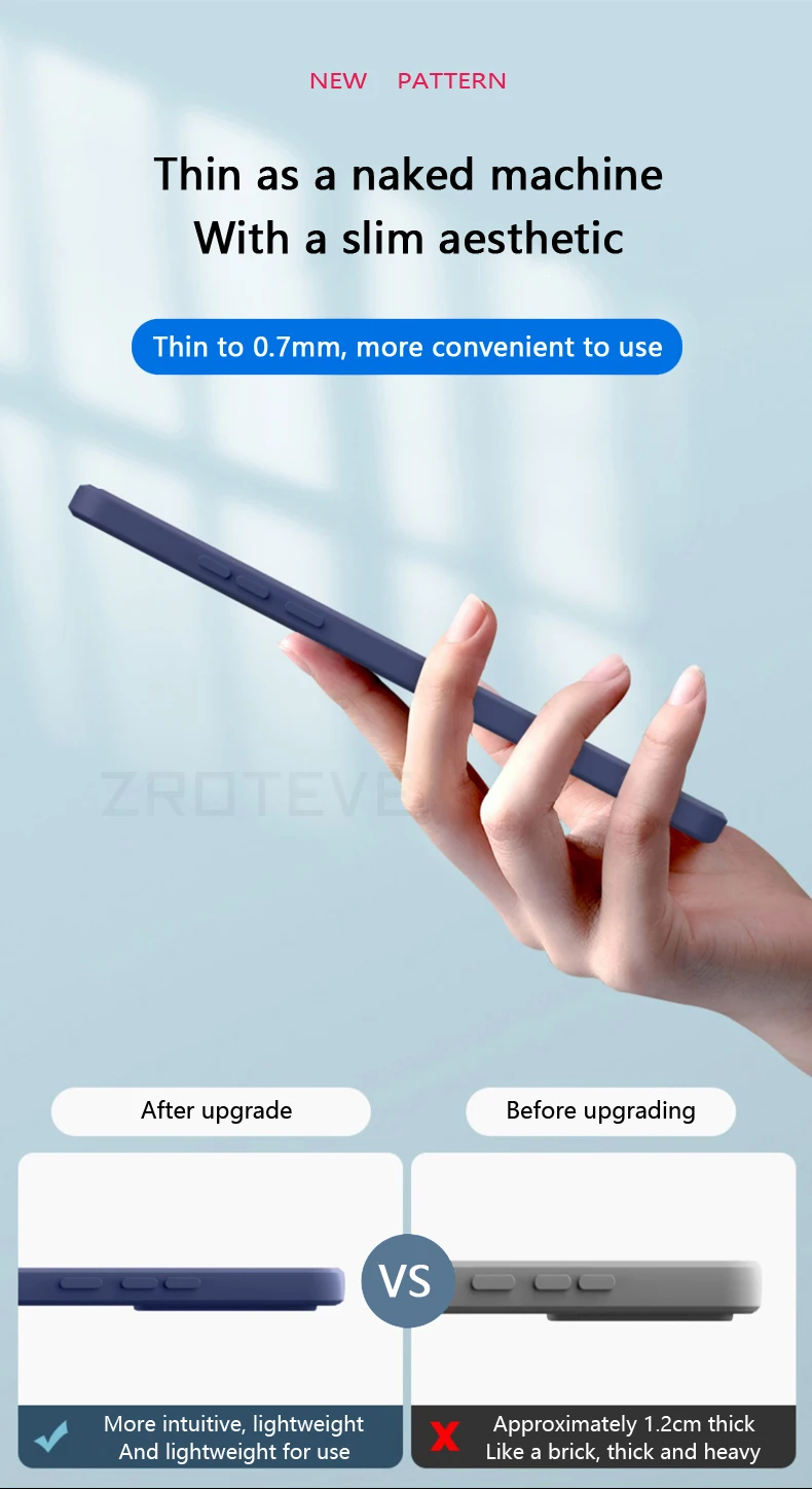 2. Esta funda de silicona líquida hecha de materiales ecológicos, de tacto suave y antihuellas dactilares, amortigua eficazmente el impacto de la caída de su teléfono.