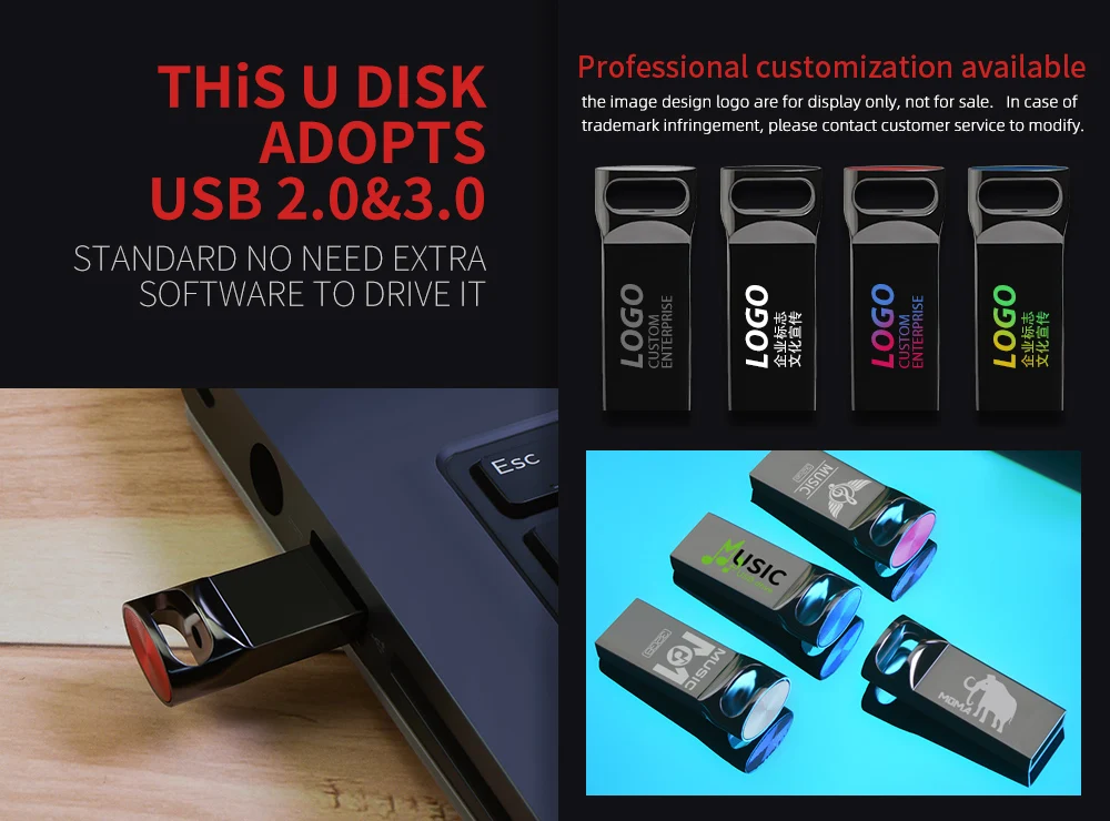 10 unids/lote unidades Flash USB 64GB Mini Metal capacidad Real 128GB memoria Stick Pen Drive 32G creativo logotipo libre almacenamiento de regalo U Disk