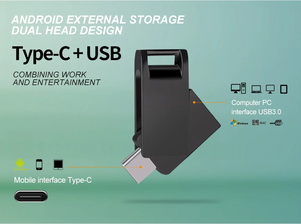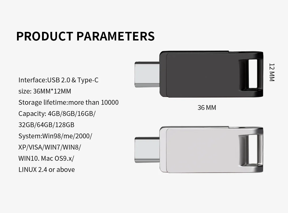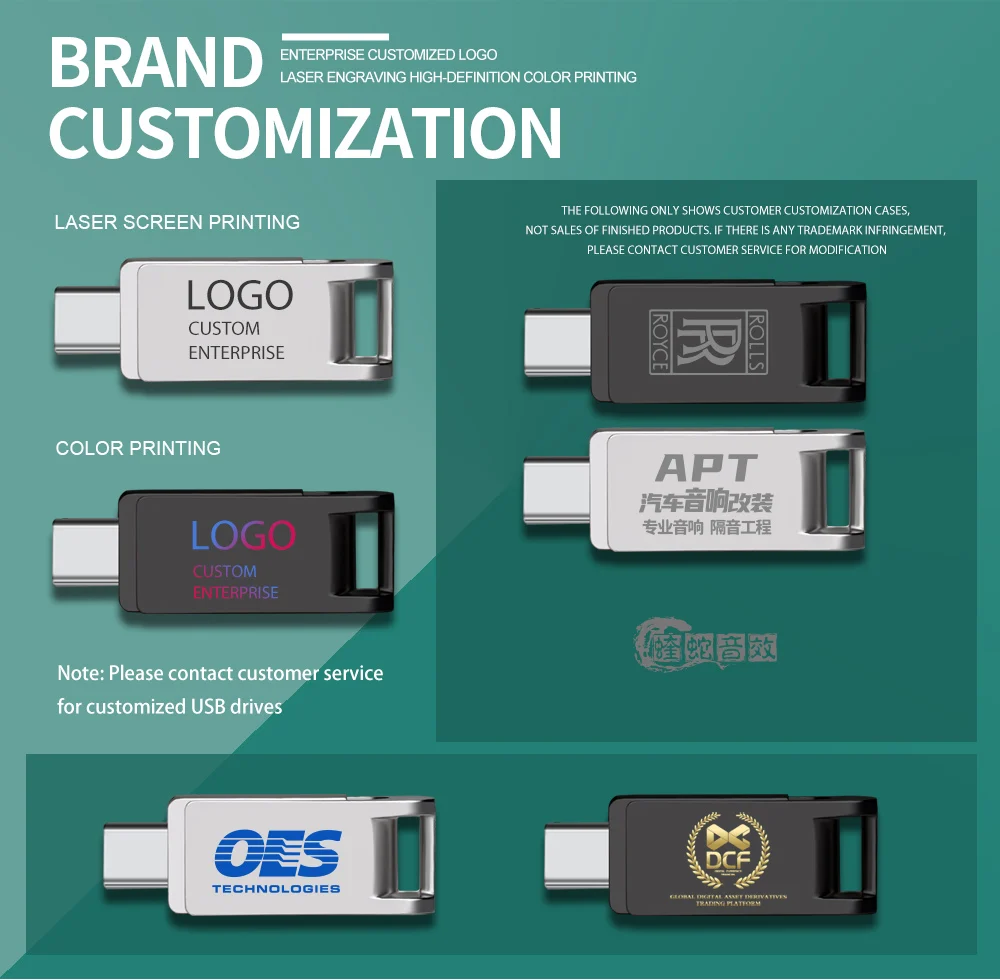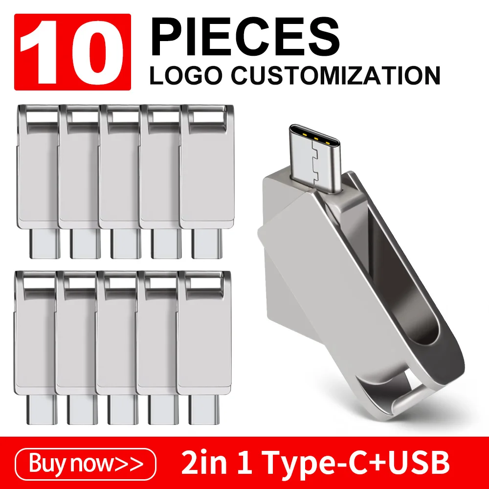 2 en 1 OTG USB 3.0 y tipo C Flash Pen Drive Memory Stick Disco Flash Usb 128GB 2 en 1 Pendrive Venta al por mayor Disco U 10 unids/lote logotipo gratis