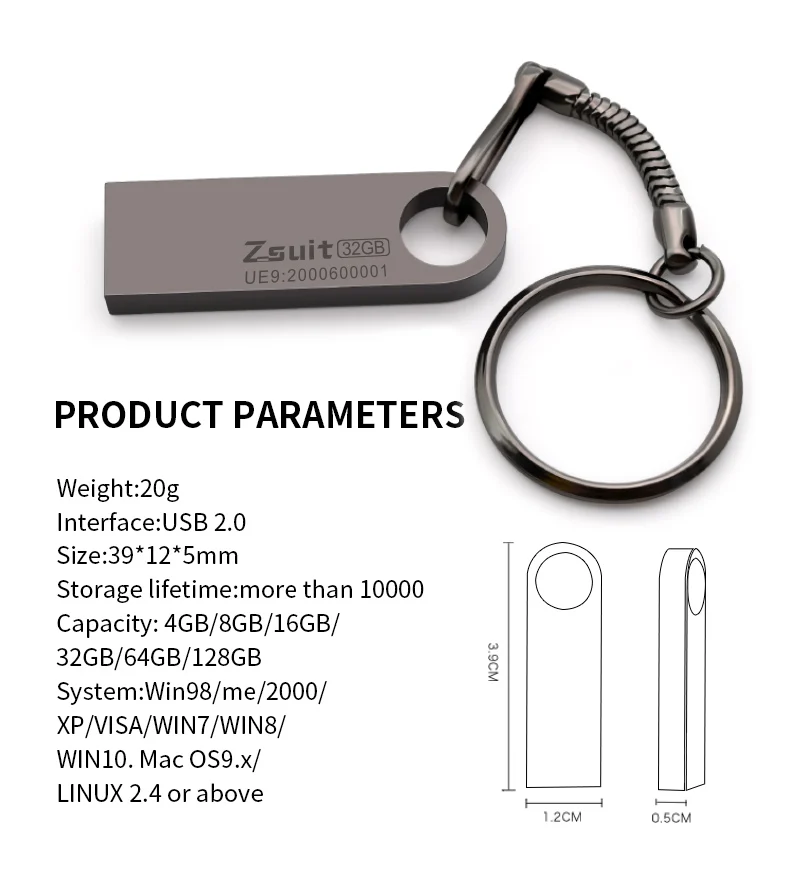 Z-suite Nueva memoria USB Stick Pen Drive Suspensión Drive 64GB Memory Stick Metal Resistente a caídas Usb2.0 128GB10 Envío gratis