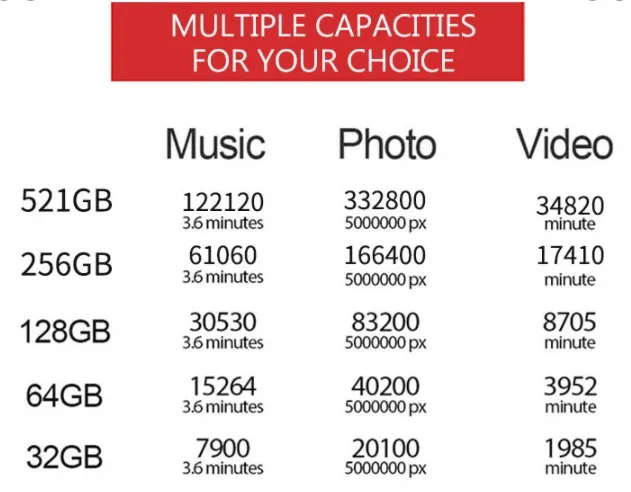 Busque en Google 'Capacidad de la tarjeta de memoria' para obtener más información