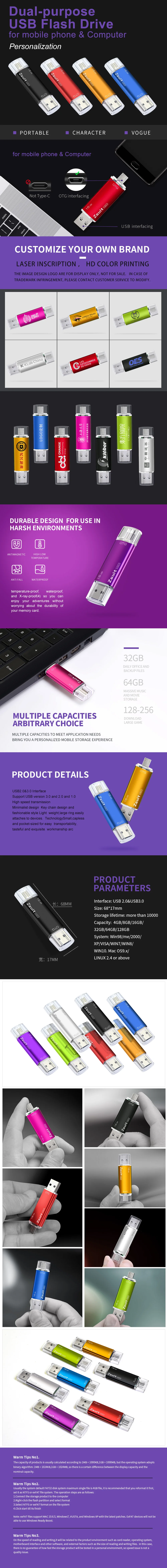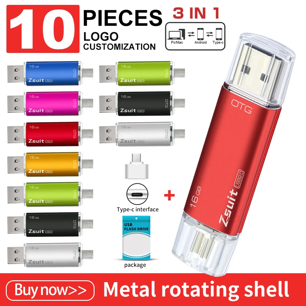 Comprar ZSUIT-unidad Flash USB 2 en 1 tipo c, Pendrive de 10 piezas, 32GB, 128GB, 64GB, logotipo personalizado, resistente al agua