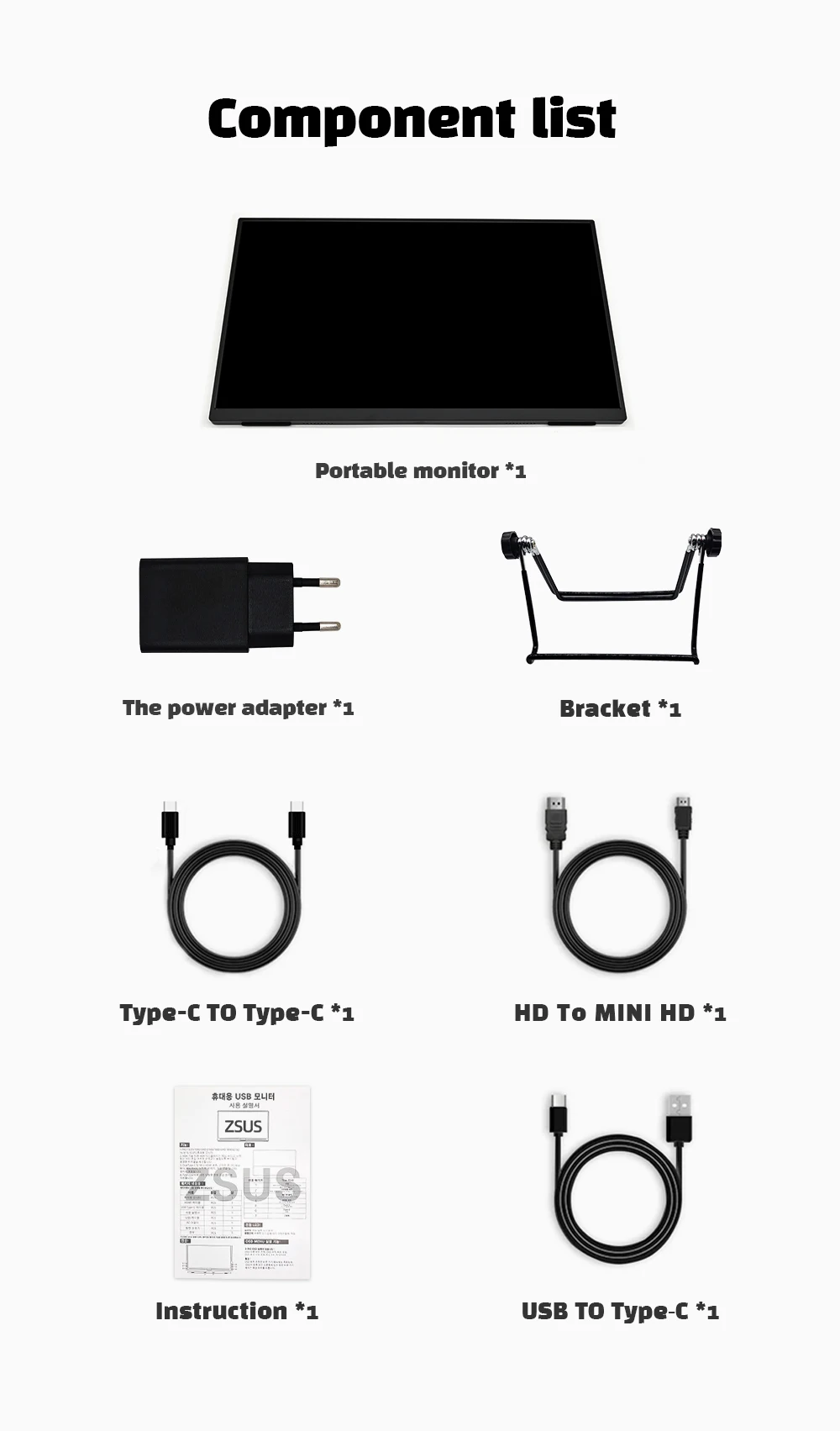 Comprar ZSUS 18 pulgadas 1080P 100Hz 100% sRGB Monitor portátil 16:9 HDR 350cd /M2 para XBox PS4/5 Switch teléfono móvil PC extensión Loptop