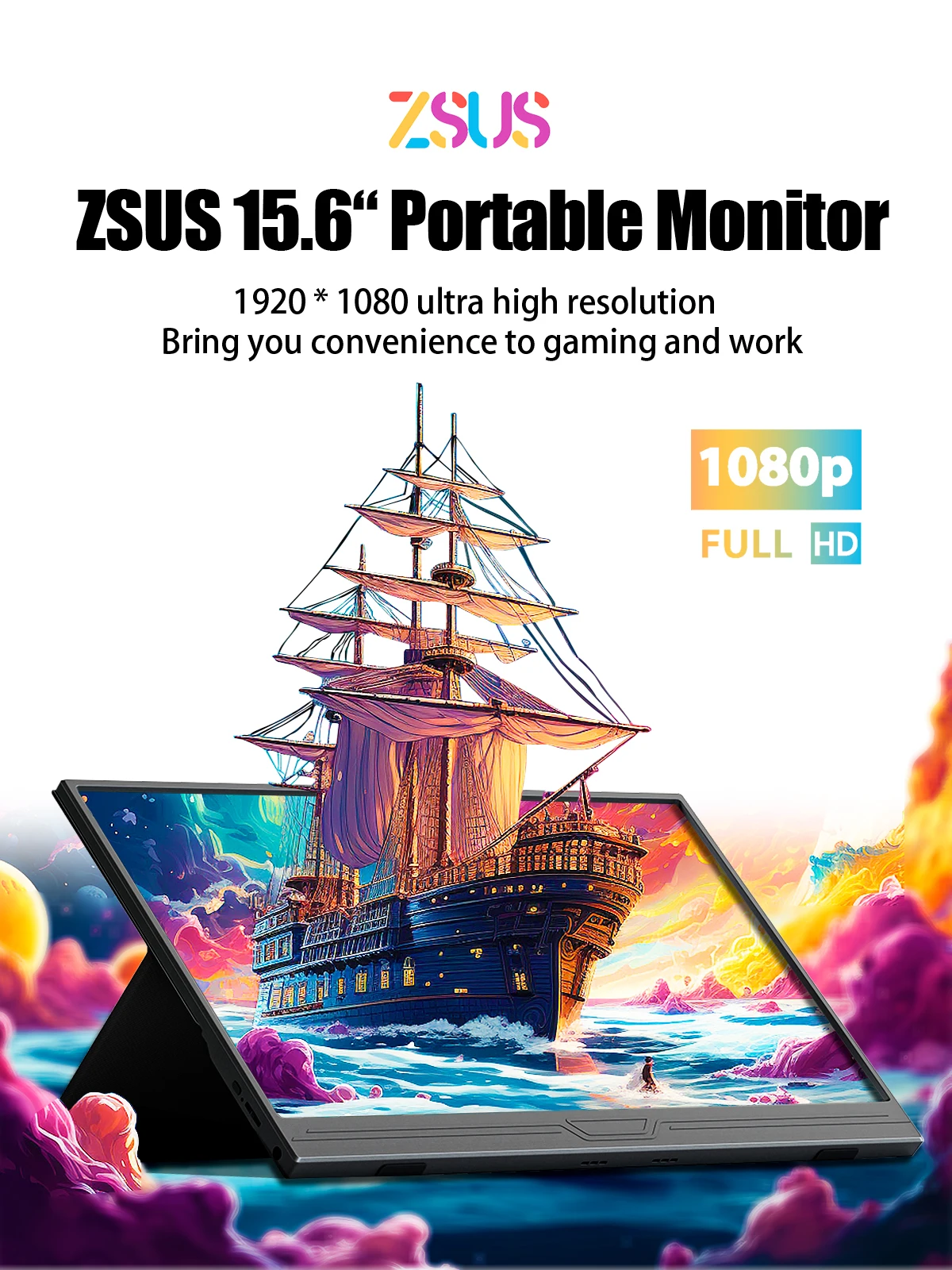 ZSUS 2023-Nueva pantalla portátil de 15,6 pulgadas 1080P