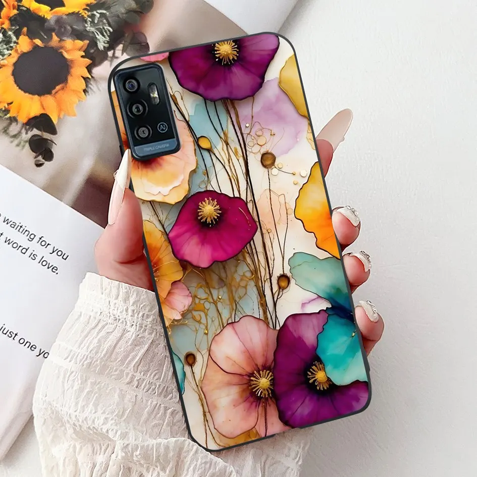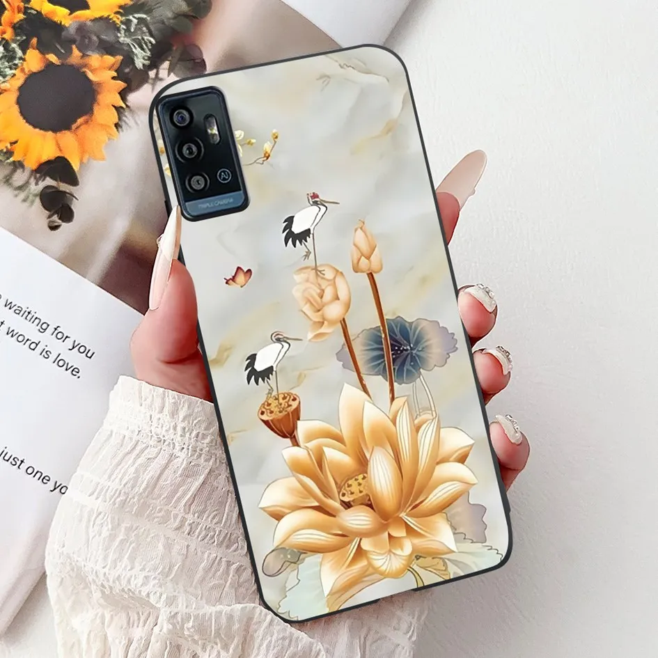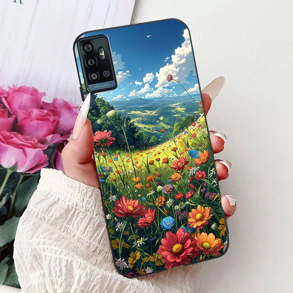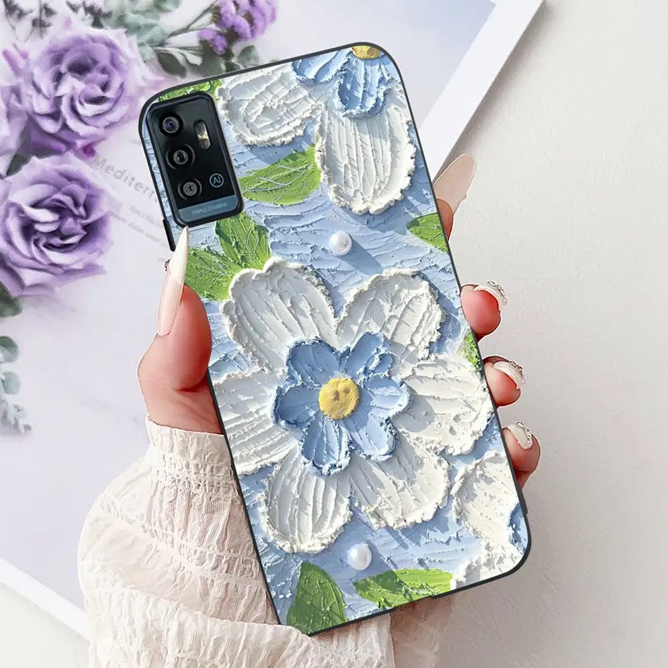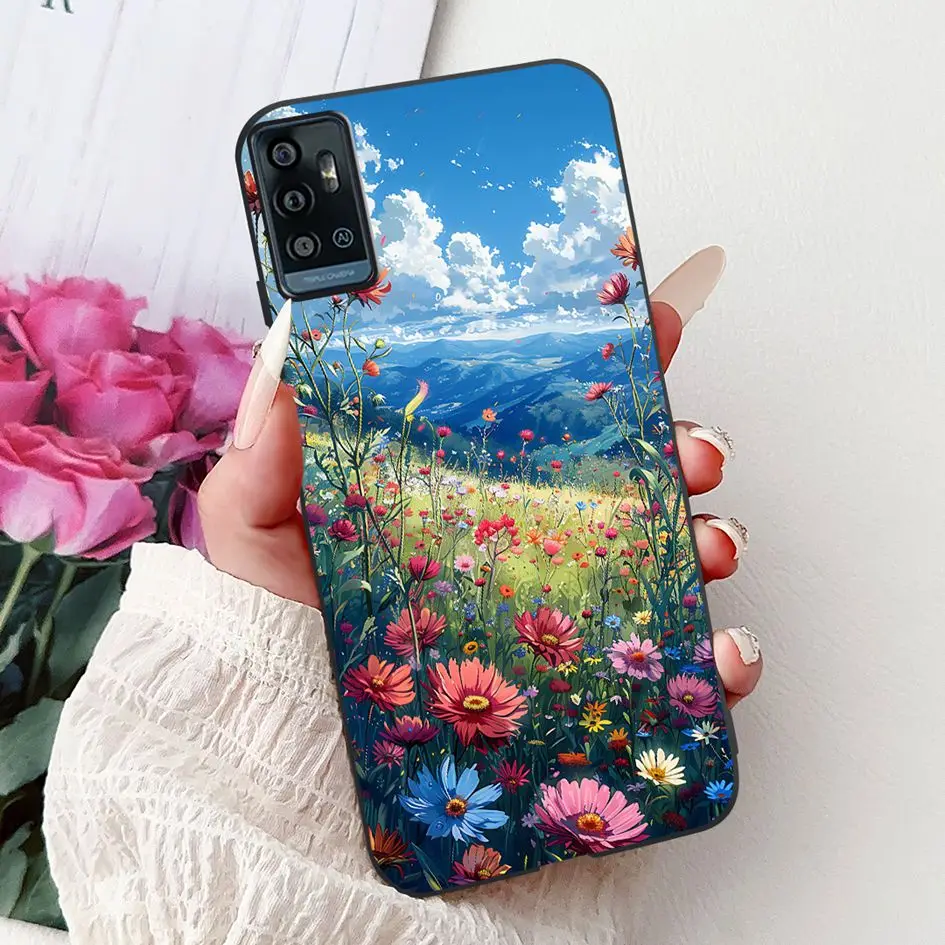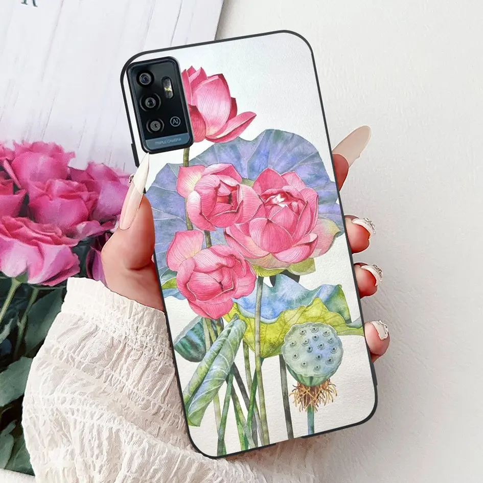 Detalle de productosPara ZTE Blade A71 2021 funda A7030 nueva moda flor artística pintada suave cubierta de silicona negra para ZTE Blade A51 A 51 TPU Capa