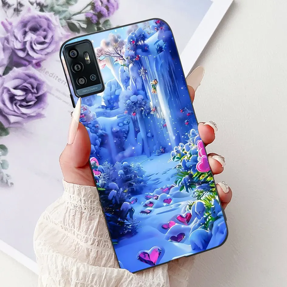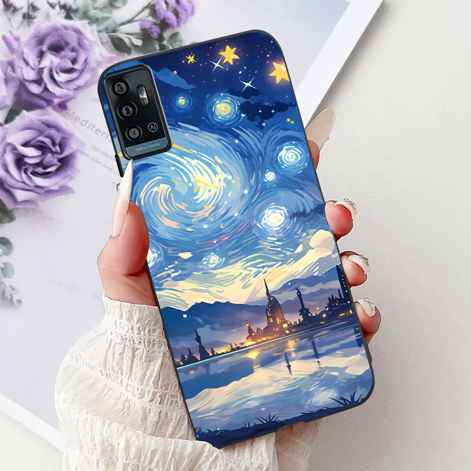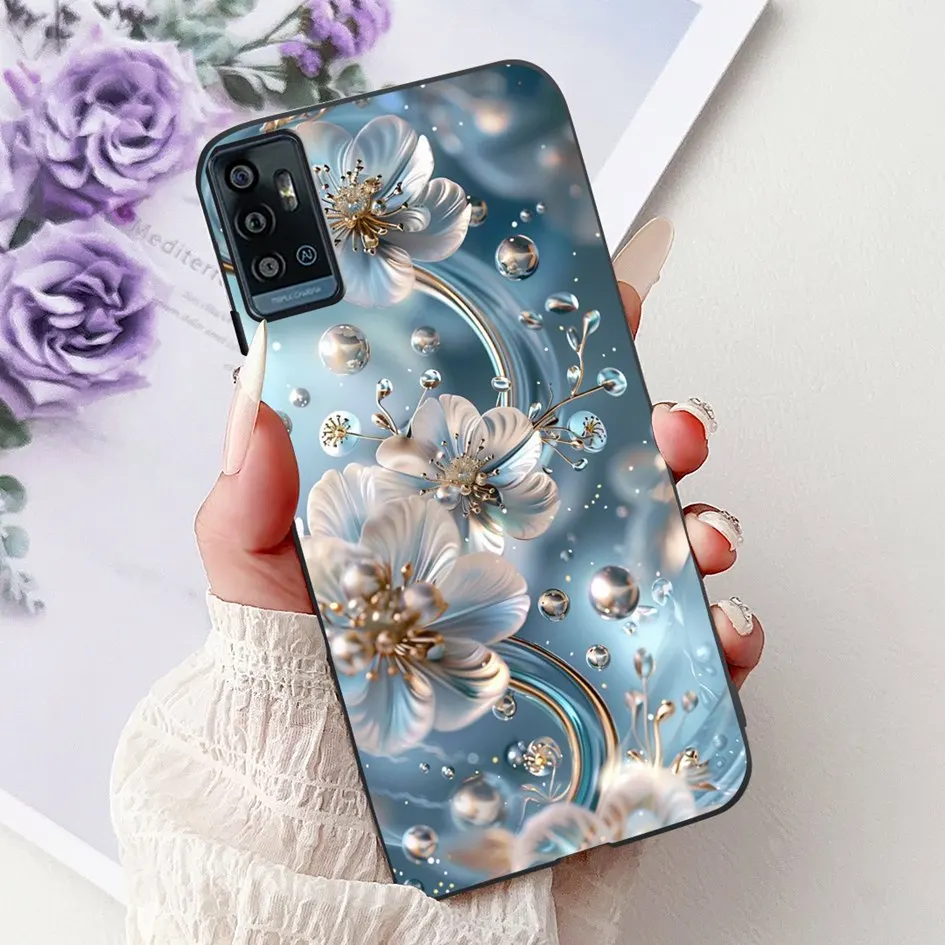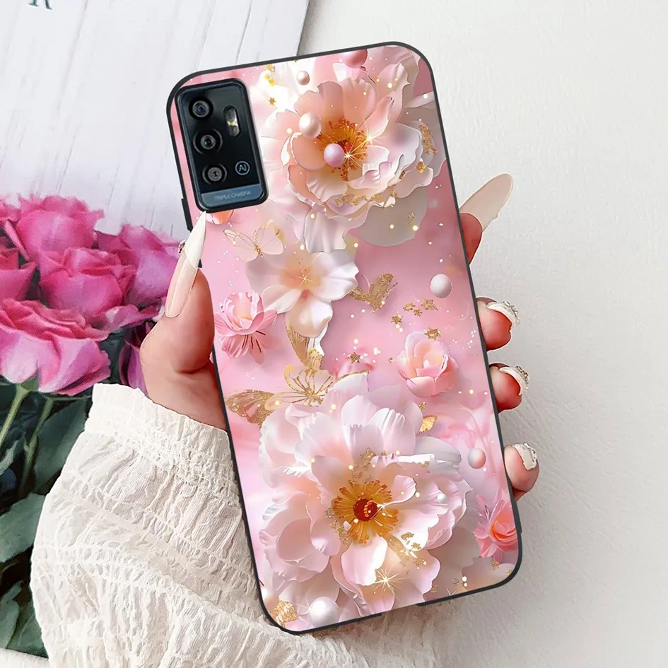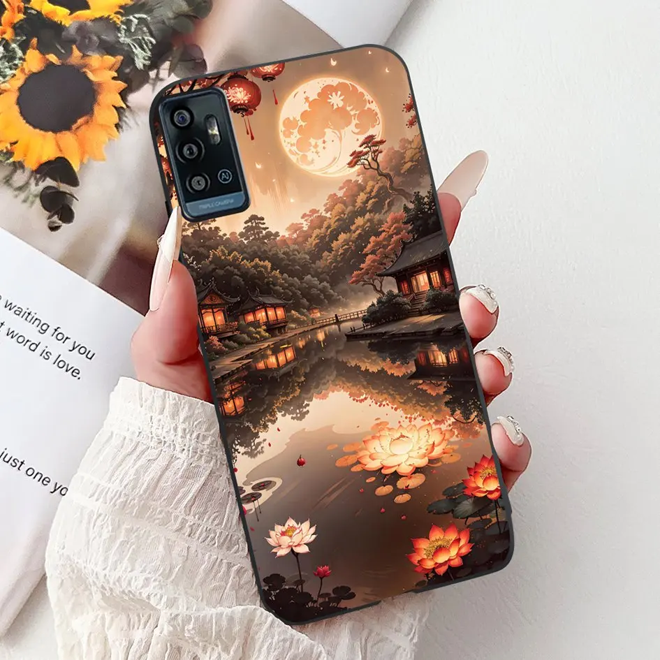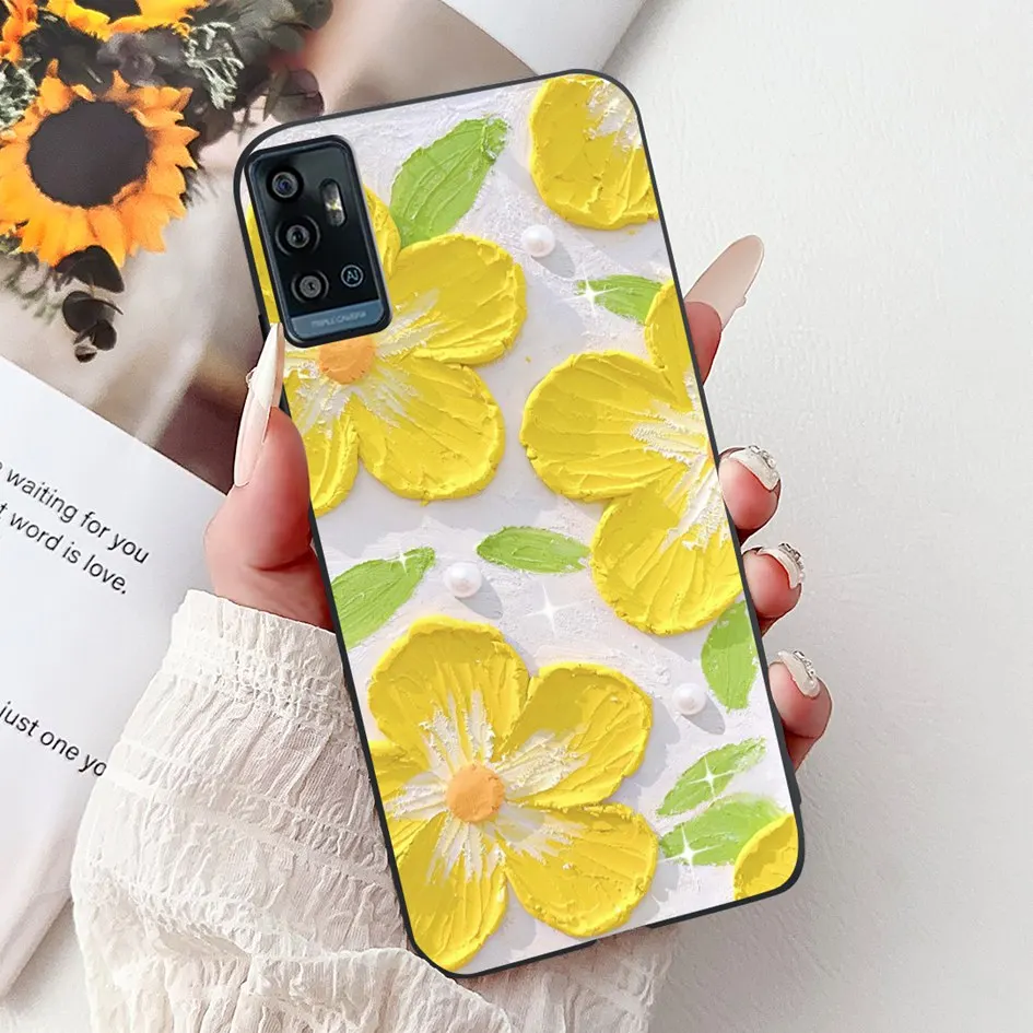 Detalle de productosPara ZTE Blade A71 2021 funda A7030 nueva moda flor artística pintada suave cubierta de silicona negra para ZTE Blade A51 A 51 TPU Capa