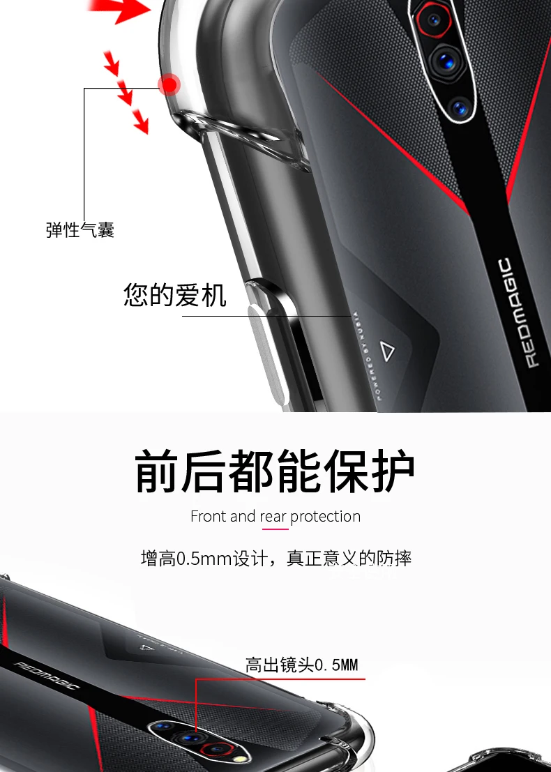 Comprar Para ZTE Nubia Red Magic 5G funda a prueba de golpes protección completa fundas de teléfono de TPU suave para Red Magic 7 6 Pro cubierta trasera transparente