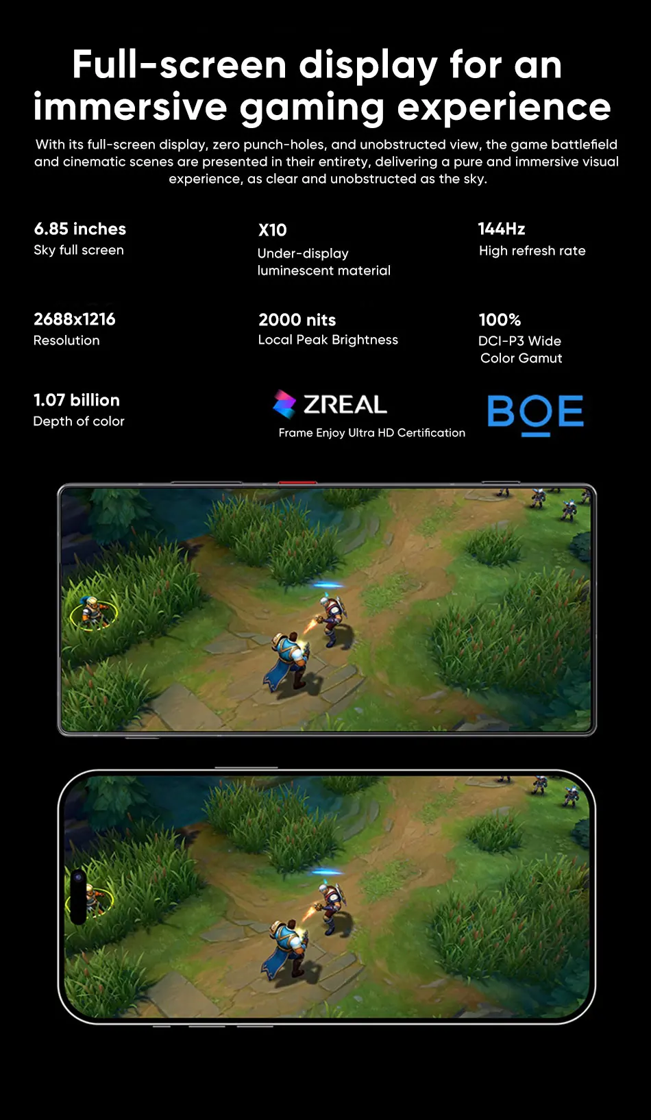6,85 pulgadas, 144 Hz AMOLEDPantalla, 2688*1216, cámara de visualización completa