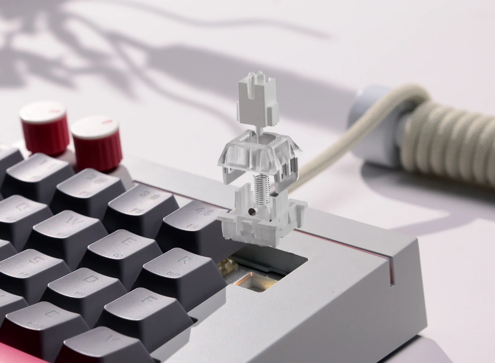 El teclado HK25 adopta un eje magnético GATERON, que es un eje lineal con un diseño de imán permanente en el interior. Tiene las características de activación rápida y reinicio oportuno, y puede alcanzar una vida útil de más de 100 millones de veces. La presión inicial es de 30 ± 10GF, la presión máxima es de 60 ± 10GF y la carrera total es de 3,85 ± 0,25mm.