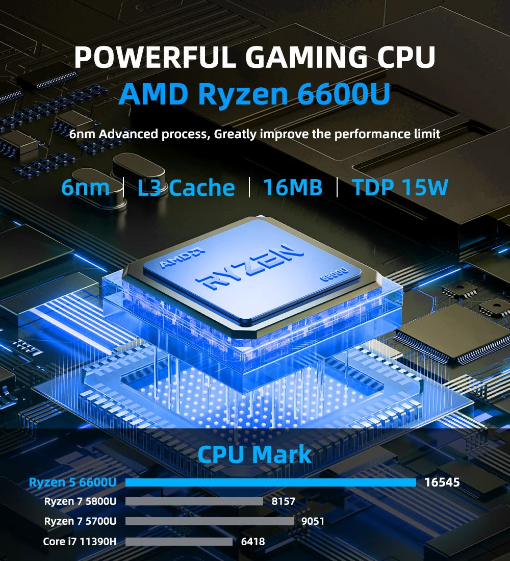 Arquitectura Zen3+ de 6 nm| 6C/12T hasta 4,5GHz| 28W TDP supera i5-1240P en un 15%