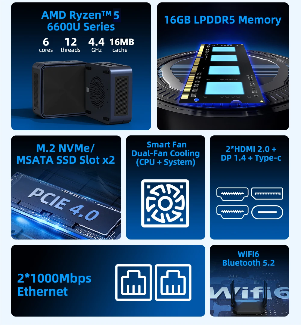 Comprar ZXIPC Mini PC AMD Ryzen 7 6600U LPDDR5 1TB M.2 SSD Computadoras de escritorio Compatible con pantalla HDMI 4K/WiFi6/USB3.2/Oficina