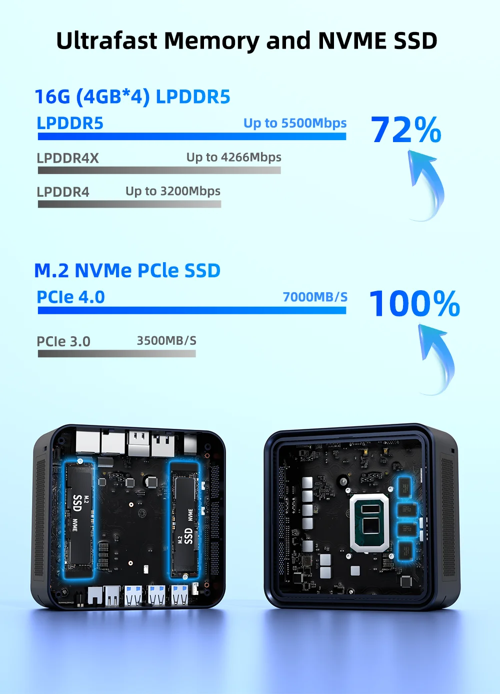 LPDDR5-6400+PCIe 4.0| Almacenamiento 50 % más rápido que SATA SSD
