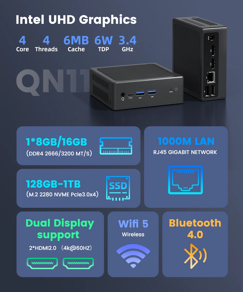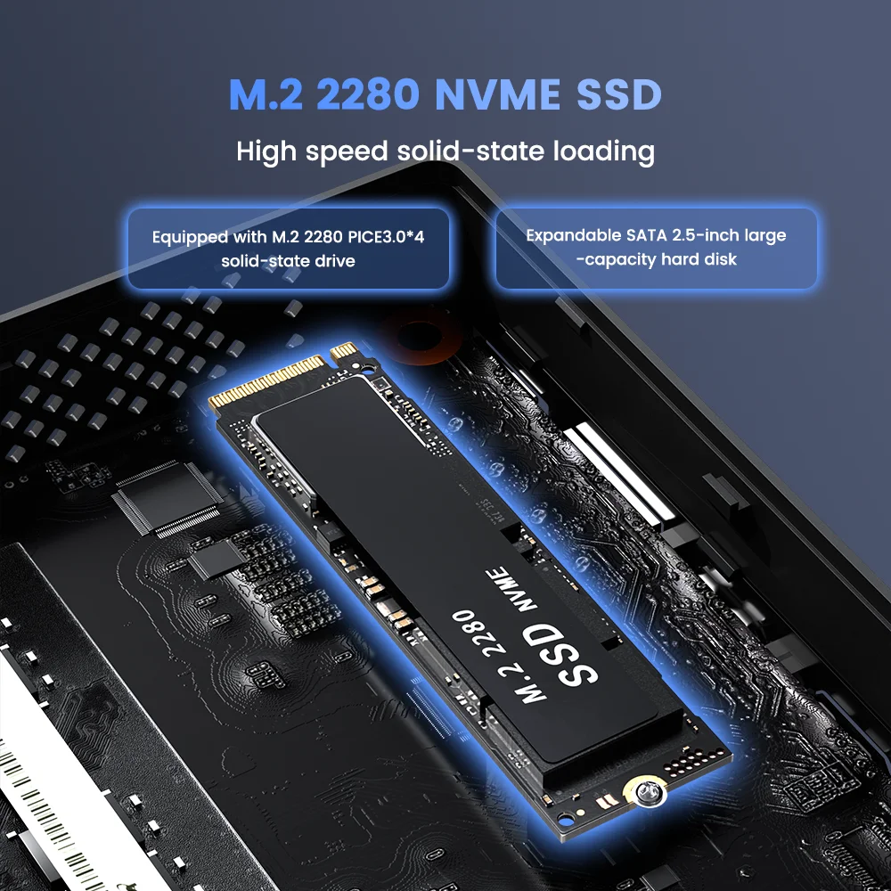 Desarrollado por un proceso Intel Alder Lake N100 de 12.a generación, este mini PC garantiza un rendimiento suave y eficiente para todos sus