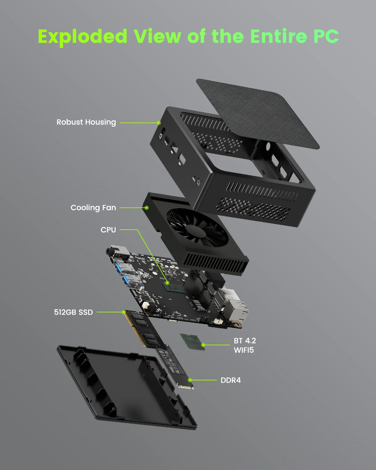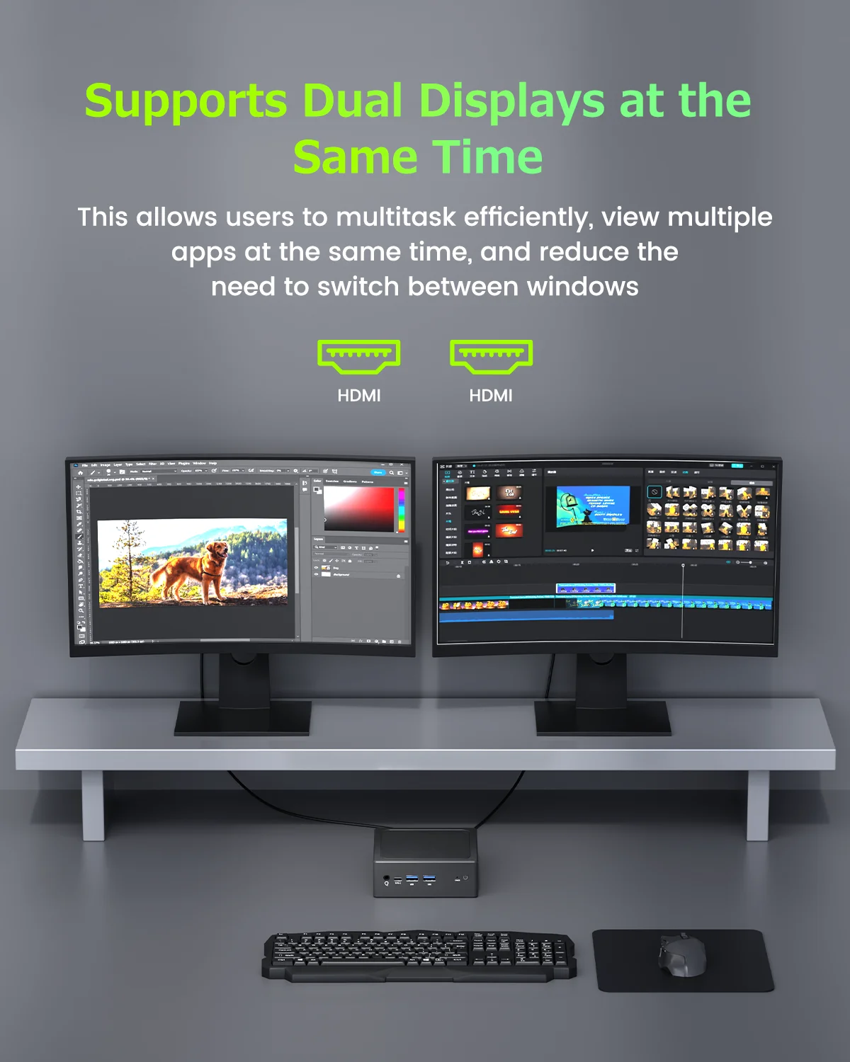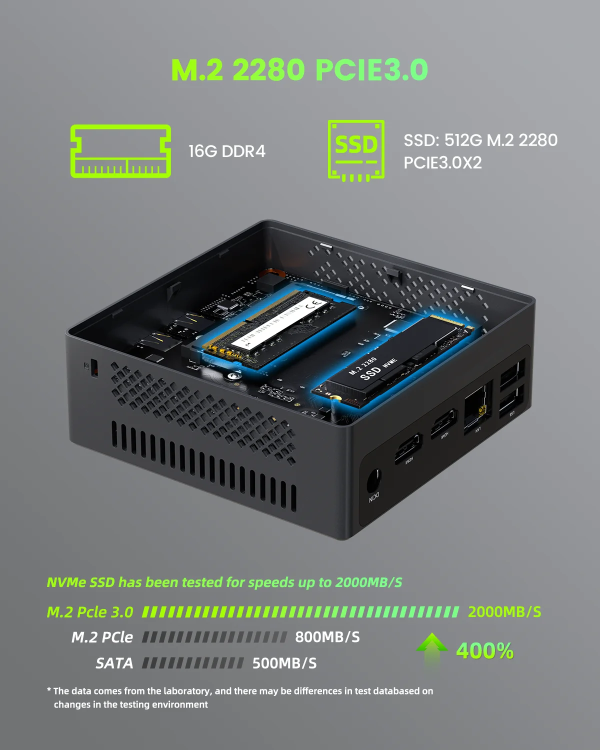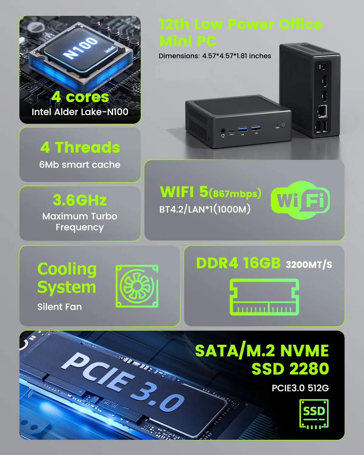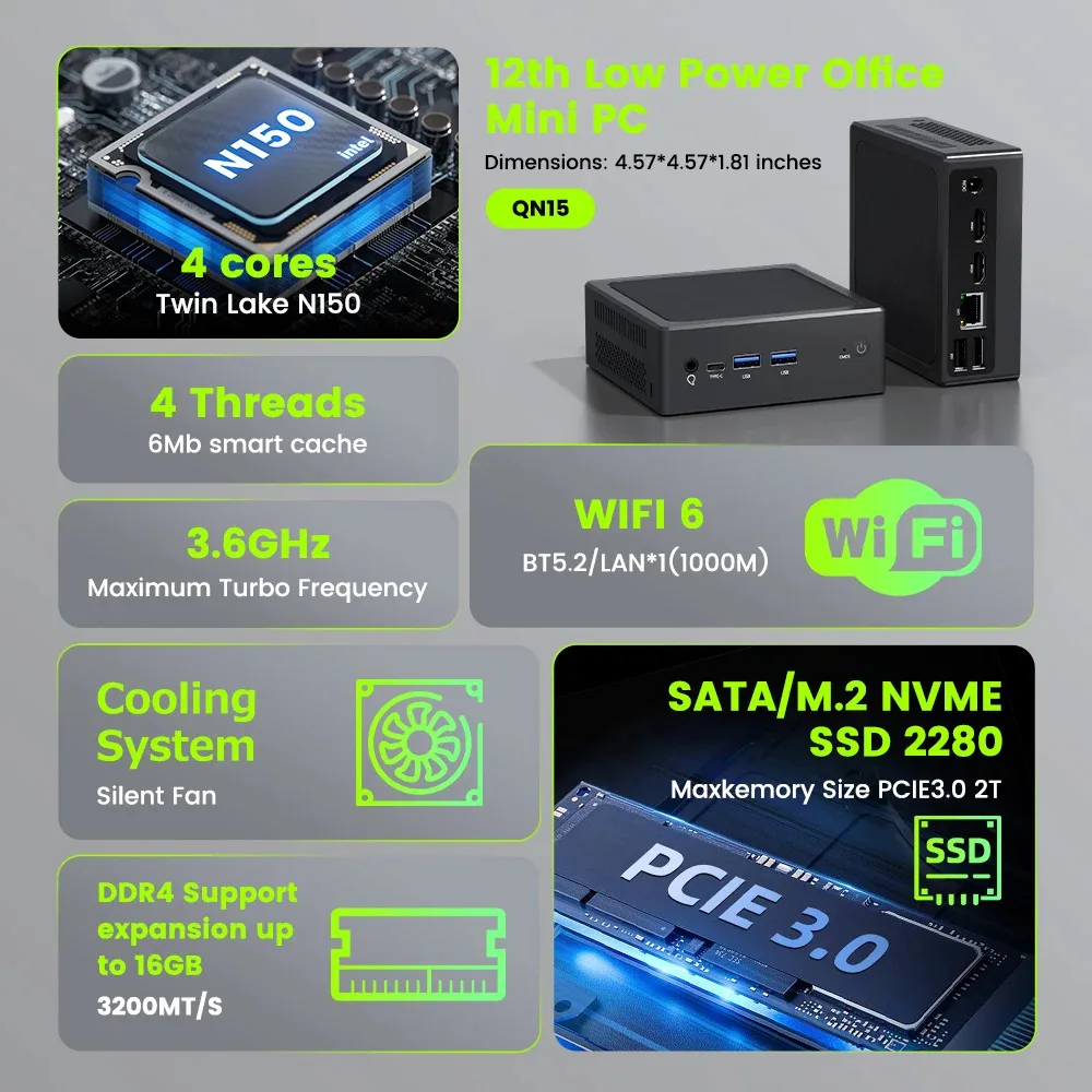 Desarrollado por un proceso Intel Alder Lake N150 de 12.a generación, este mini PC garantiza un rendimiento suave y eficiente para todos sus