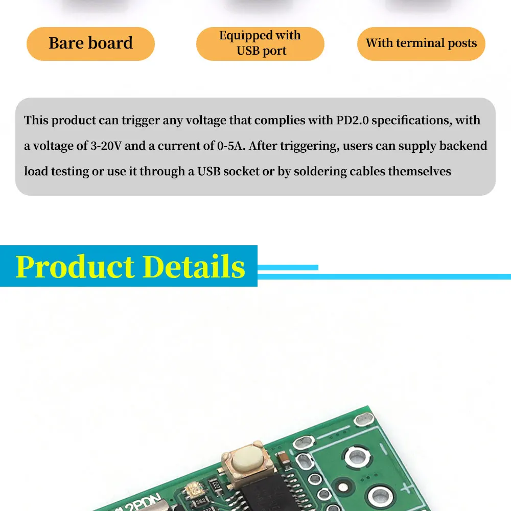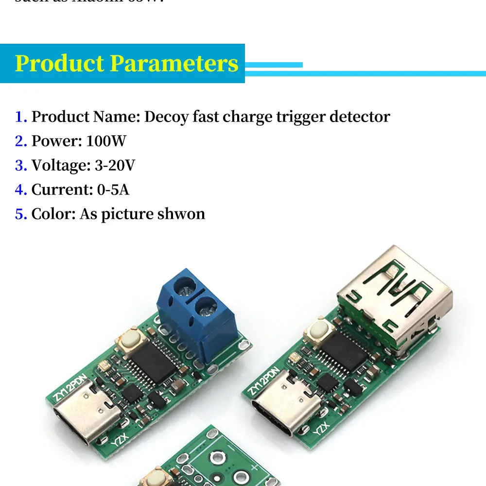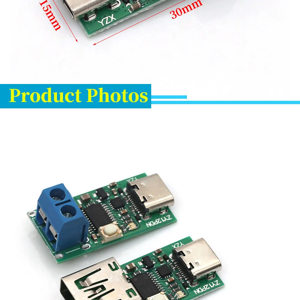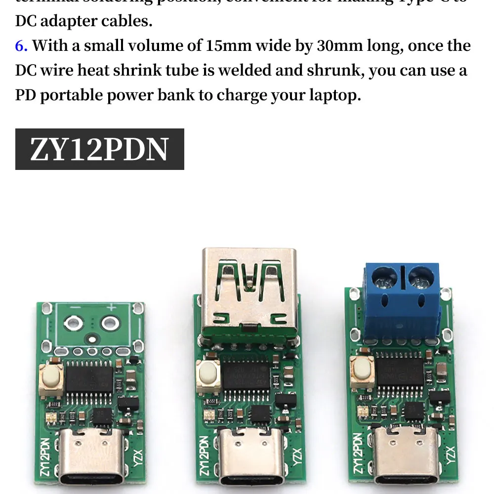 Comprar ZY12PDN USB-C PD2.0 3,0 a conversión CC disparador de carga rápida Detector de pollido interruptor de alimentación del ordenador portátil a tipo C