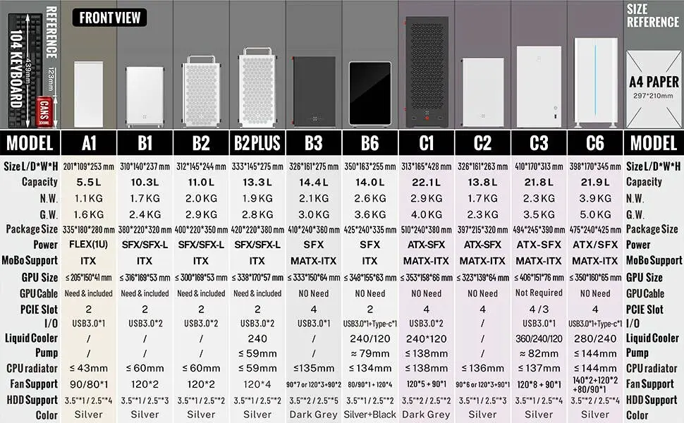Fuente de alimentación: ATX(150*140*86mm)/SFX(125*63,5*100mm)/SFX-L(125*63,5*130mm)